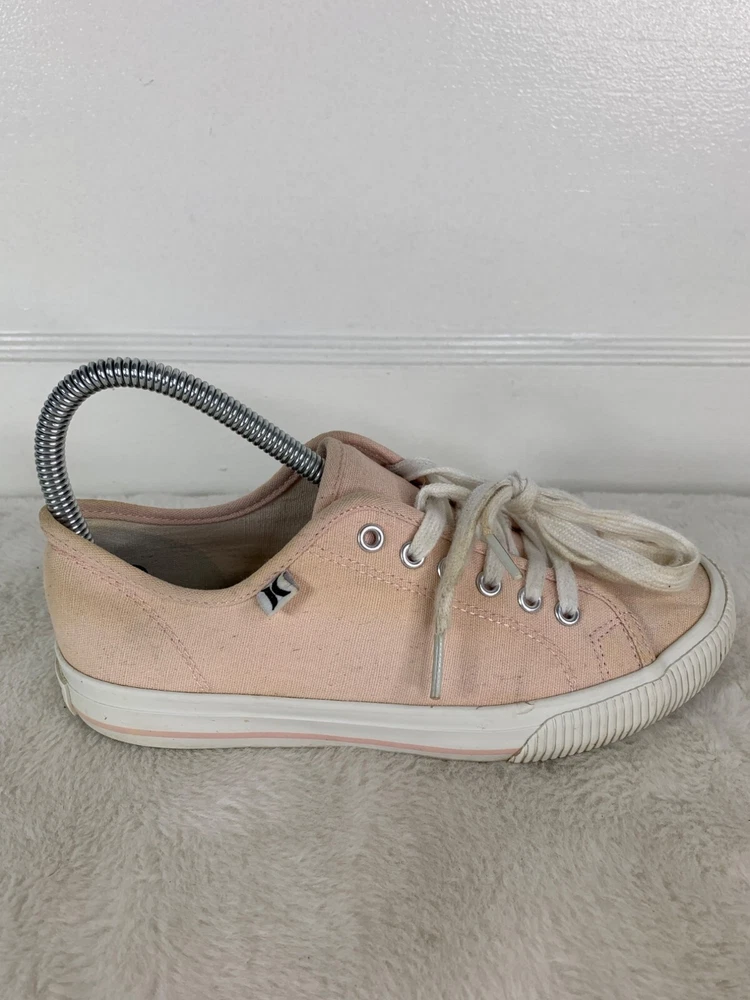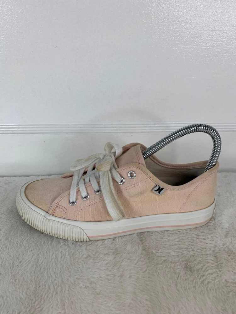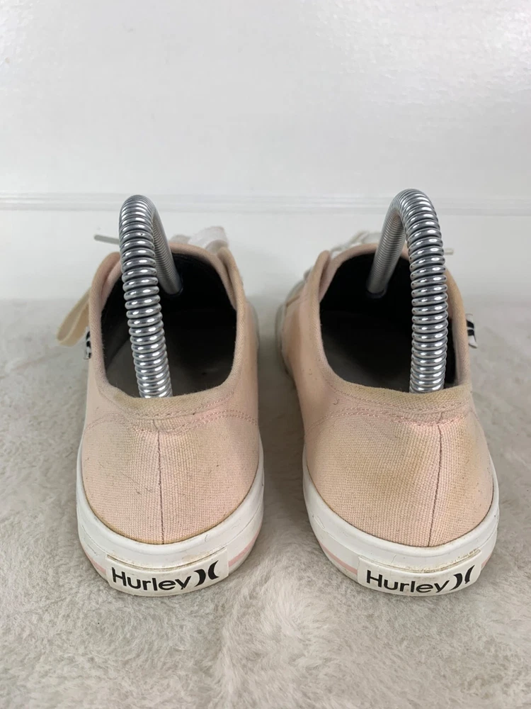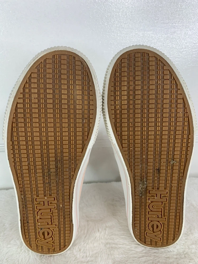 These Hurley sneakers provide a blend of style and comfort, suitable for everyday casual wear. Crafted from durable canvas, they ensure longevity and a modern look. • Lace-up design for adjustability • Sturdy rubber sole for grip • Lightweight and breathable • Metal eyelets for added strength • Low-top silhouette for flexibility Slight staining on toes and minor discoloration on surface.