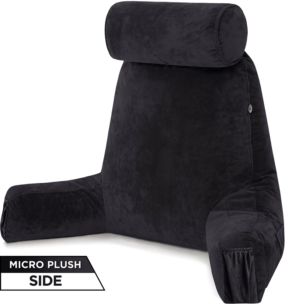 Husband Pillow Medium Aspen Edition Stable Black, Sit Up Reading & Bed Rest with Arms, Ultra-Comfy, Detach Neck Roll - Premium Shredded Memory Foam Backrest, Reverses to Micro: Suede or Plush Product Details Size: Medium Aspen Edition Color: | Stable Black | Brand: Husband Pillow MPN: MINIHUSB-COW-SMSblack UPC: 632726096083 EAN: 0632726096083 Brand: Husband Pillow Special Feature: Removable Cover Color: | Stable Black | Size: Medium Aspen Edition Fill Material: Memory Foam Brand: Husband Pillow Special Feature: Removable Cover Color: | Stable Black | Size: Medium Aspen Edition Fill Material: Memory Foam Shape: Wedge Age Range (Description): Adult Recommended Uses For Product: Reading Use for: Back Material: Memory Foam Item Firmness Description: Medium Product Care Instructions: Machine Wash Number of Pieces: 1 Pattern: Solid Item Weight: 2 Pounds Fabric Type: Microplush/Microsuede UPC: 632726096083 Manufacturer: Hit Notion Product Dimensions: 8.5 x 15 x 31.5 inches Item Weight: 2 pounds Country of Origin: China Item model number: MINIHUSB-COW-SMSblack Date First Available: March 28, 2020 Generous comfort scaled to suit: if youre looking for a big, cozy reading pillow that wont overwhelm you or your bed, this is your guy. The just-right husband pillow offers the same outrageous comfort as its big brother, but its tailored to perfectly fit smaller people and spaces. The aspen editions reversible cover means you get two styles in one amazing reading pillow. Enjoy smooth microsuede or fuzzy microfiber, whichever surface matches your mood and decor. Pockets for everything: remote, tablet, glasses, phone - spacious side and back pockets mean there is space for all your most essential items. Theres even room to stash your favorite energy bar. Although with this relaxing bed rest pillow in your life you may be tempted to skip that evening run. Bikers and other exercise enthusiasts will love the detachable neck roll which makes a great bolster for tired knees or feet. Your kids will love this: homework can actually be fun when youngsters have a cozy reading pillow with arms to keep them company. The shredded memory foam fill provides plenty of back support, and a cuddly pillow is a happy addition to any child or teens room. Family movie night is twice as nice when everyone has a pillow thats just the right size. Grab the popcorn and skittles and enjoy. If someone in your family is college-bound, this bed pillow makes any dorm feel a little more like home. An array of choices: happiness is all about choices, and this pillow gives you plenty of them. A hidden zipper allows you to add or remove memory foam to adjust the loft, so you have just the right amount of back support. Easily switch the reversible cover from microsuede to microfiber for another change of pace. And, if you redecorate, your favorite pillow will still look perfect. Covers are available in an array of colors and styles. Comfort Guarantee: The superior quality and workmanship of the husband pillow is backed by our promised to resolve all issues . This pillow is taller and wider than the leading backrest pillows available, measuring a generous 23 inches in height. In addition, we sell extra covers, should you ever want to change colors or replace the cover.
