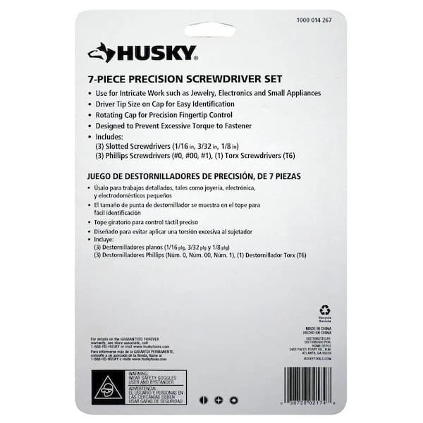 Number of Pieces: 7 Magnetic Tip: No Individual/Set: Set UPC: 038728021748 Brand: Husky Type: Does not apply gtin13: 038728021748 Color Family: Black Drive Style: Phillips-Slotted Tool Set Type: Screwdriver Sets Hand Tool Type: Screwdriver Set Tools Product Type: Hand Tool