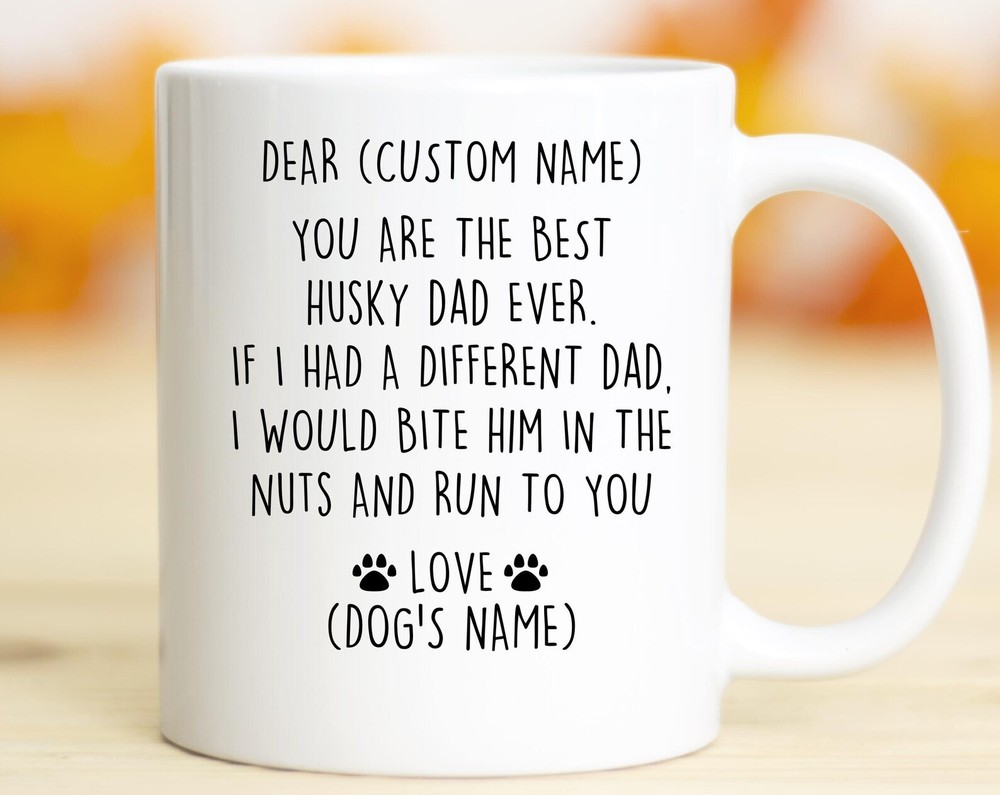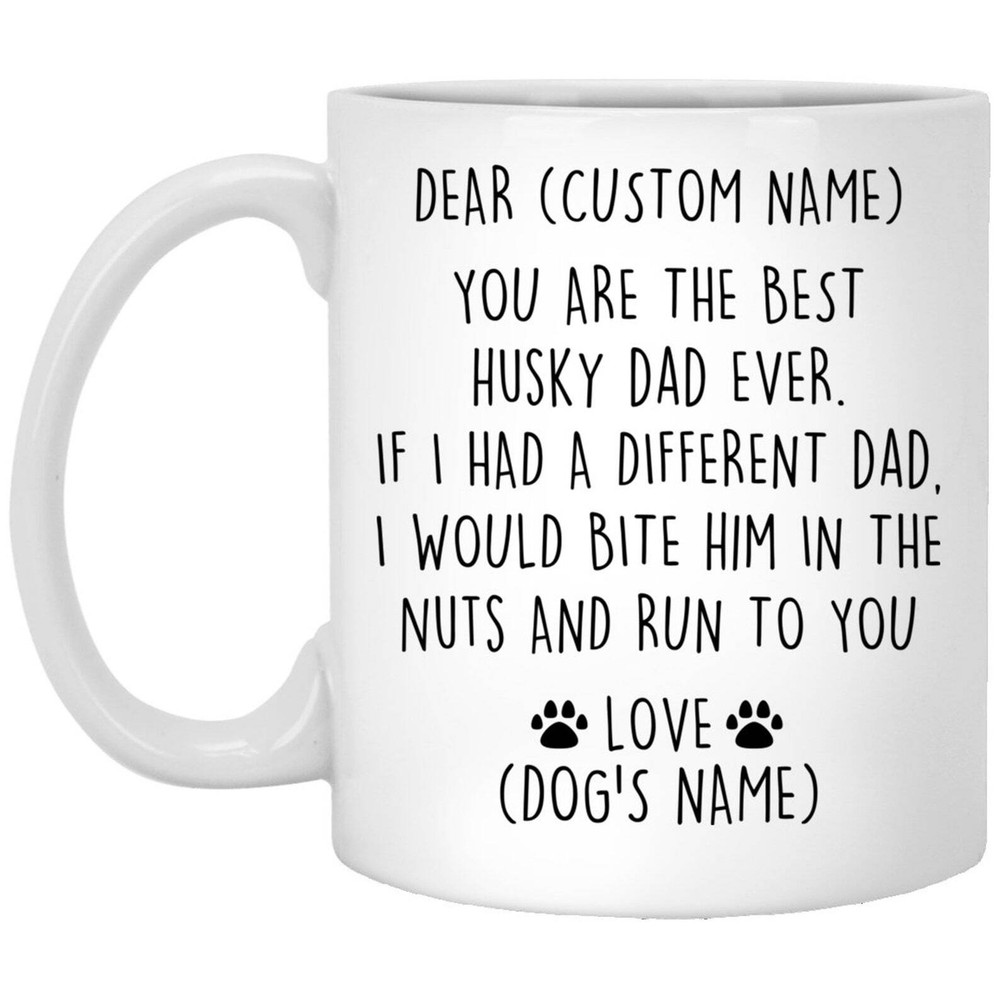 Husky Dad Birthday Gift Husky Dad Christmas Gift Husky Dad Valentine Gift Favorite Husky Dad Gift Husky Dad Appreciation Husky Dad Mug Product Details.. This high quality 11oz. ceramic white mug has a premium hard coat that provides crisp and vibrant color reproduction sure to last for years. Perfect for all hot & cold beverages. The highest quality printing possible is used. It will never fade no matter how many times you wash it. Material: 100% Ceramic. Print both sides. Dishwasher and Microwave Safe. High Gloss + Premium White Finish. Printed in the U.S.A. Personalized & Custom. We support personalized and custom mug to add custom, when placing an order, you can add notes to the "order note" in shipping address section. Also you can contact us directly via message. Shipping Info. Ready to ship in 1 to 2 business days, All products are made-to-order and proudly printed in the United States. Shipped by USPS and DHL, You will receive your order in 5-7 days. Replace & Refund. All products are defective during shipping broken, chipped will be replaced free of charge. You are not satisfied with the product, we will refund 100% money to you. If any other issues arise, please do not hesitate to message, we would be more than happy to assist you.
