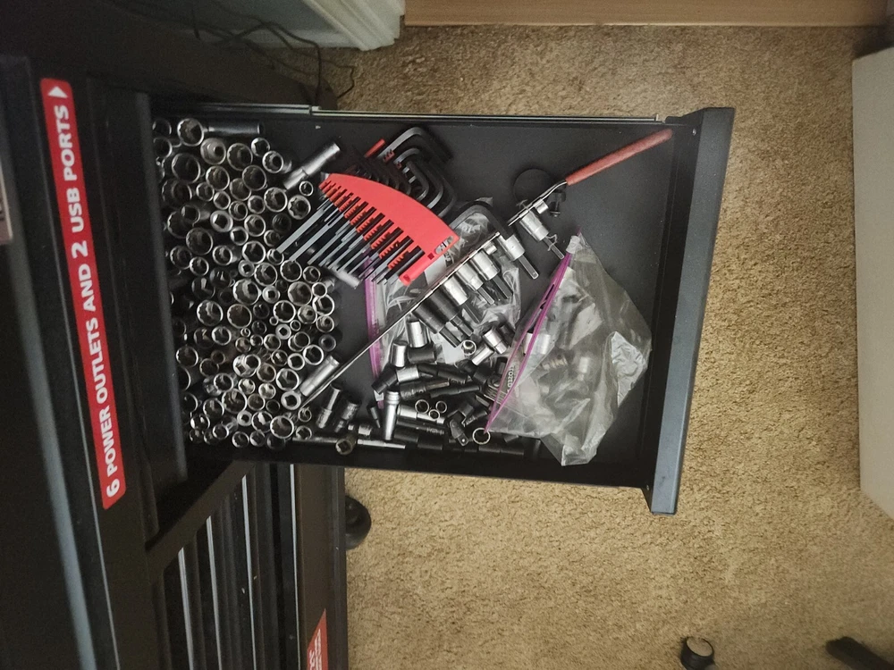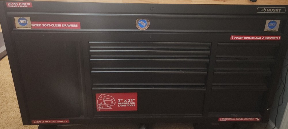 For Sale: Premium Mechanic's Toolbox Elevate your garage or workshop with this top-of-the-line Husky Heavy Duty Toolbox, complete with essential mechanic tools and select diagnostic tools. Perfect for professionals and enthusiasts alike! Features: 10 Drawers : Organized storage for all your tools One Side Cabinet : Additional space for larger items 6 Power Outlets : Conveniently power your tools and devices 2 USB Ports : Keep your gadgets charged and ready One 24" Deep Drawer : Ideal for storing bulky tools Swivel Rollers : Easy maneuverability around your workspace Dimensions : 6 feet wide, 38 inches tall Construction : Robust Husky heavy-duty steel What's Included: Assorted mechanic tools to get started right away Select diagnostic tools for thorough vehicle inspections Condition : Excellent, gently used. All tools are in perfect working order. Price : $7000
