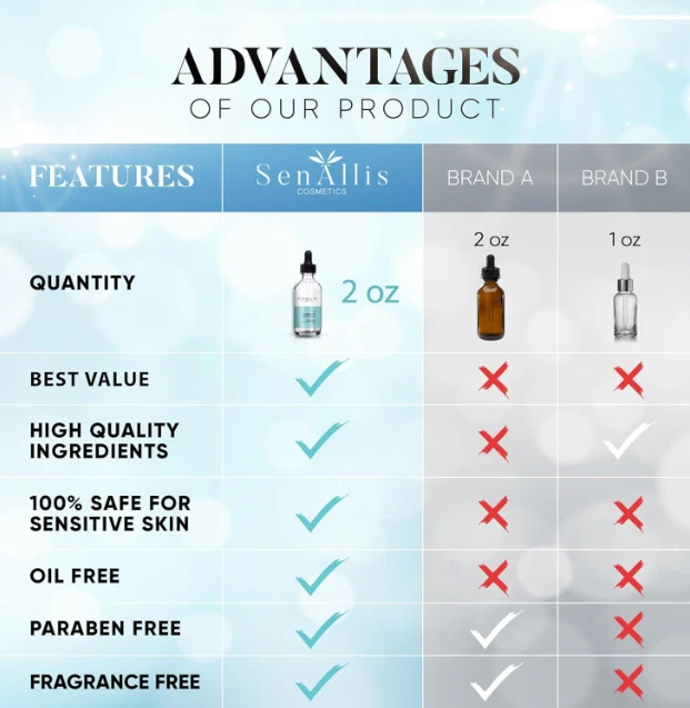 Hyaluronic Acid Anti-aging Serum for Face - 100% Pure Medical Formula - 2oz US Warehouse - FREE & FAST Shipping in US Product Description: These statements have not been evaluated by the FDA. This product is not intended to diagnose, treat, cure, or prevent any disease or health condition. Hyaluronic Acid (HA) helps to reduce wrinkles and other signs of aging, and did you know that it can hold up to 500x its weight in water? It's acts as a great humectant when a moisturizer is applied over it. We are the direct manufacturer of our product and quality means everything to us, that's why they're made right here in the United States. Keep your skin looking youthful with our Hylauronic Acid serum pack, it comes with a 2 oz dropper bottle. Keeping your skin moisturized is an important part and crucial element when using a Hyaluronic Acid serum, the HA pulls moisture from the air, and during the colder months the air will want to pull moisture from wetter objects, such as your skin, much like opening the window during a cool day will lower your homes temperature, make sure to add a moisturizer on top of this product once you apply it and it begins to dry. Helps to hide signs of aging such as, wrinkles, large pores, dark spots and slight imperfections on your skin.-No FRAGRANCES, PTHALATES, PARABENS Feedback: 1.Any question for your order, please contact us in time, we will reply to you within 24 hours and give you a satisfactory answer. 2.If you are satisfied with our products and services, hope to take up your a little precious time to leave feedback reviews for our products.Thanks! 3.Your satisfaction is our effort. Welcome to order again! Have a great day! Our Policy: 100% Satisfaction Guarantee 20% of restocking fee will be charged for return item