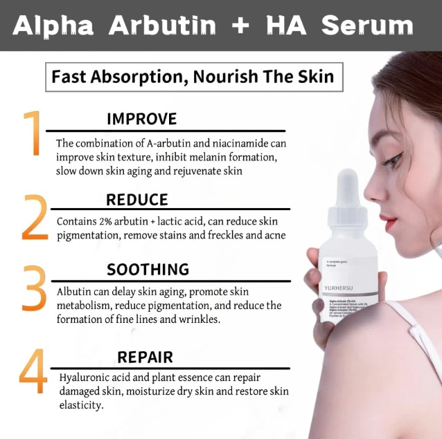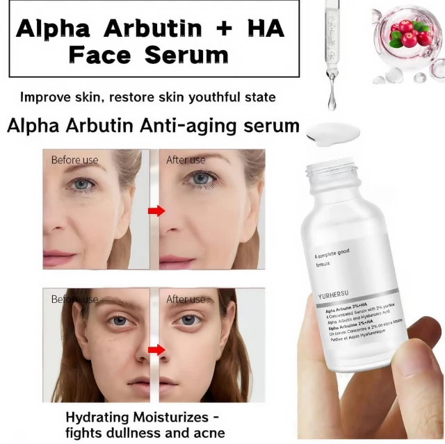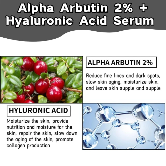 Hyaluronic Acid Anti-aging Serum for Face - 100% Pure Medical Formula - 2oz US Warehouse - FREE & FAST Shipping in US Product Description: These statements have not been evaluated by the FDA. This product is not intended to diagnose, treat, cure, or prevent any disease or health condition. Hydrating: Enhance skin hydration with 2% alpha arbutin + hyaluronic acid serum. Helps skin maintain moisture, increases skin moisture, improves dry skin by replenishing adequate moisture, and makes your skin fuller and smoother. Fine Line and Acne serums: Our serums are light in texture and provide adequate moisture and nutrients for the skin. It helps to reduce facial pores, excess oil and fine lines and moisturizes the skin. Alpha arbutin 2% + hyaluronic Acid Serum: This facial serum contains a rich blend of alpha arbutin and hyaluronic acid. It gently and effectively improves pores, fine lines and dry skin. Promotes absorption: When combined with hyaluronic acid, arbutin helps these ingredients penetrate the skin better, increasing skin elasticity and reducing fine lines. Daily use: Our hyaluronic acid serum is designed for daily use. Apply 3-5 drops to face and massage until absorbed. The effect is better through long-term use. Feedback: 1.Any question for your order, please contact us in time, we will reply to you within 24 hours and give you a satisfactory answer. 2.If you are satisfied with our products and services, hope to take up your a little precious time to leave feedback reviews for our products.Thanks! 3.Your satisfaction is our effort. Welcome to order again! Have a great day! Our Policy: 100% Satisfaction Guarantee 20% of restocking fee will be charged for return item