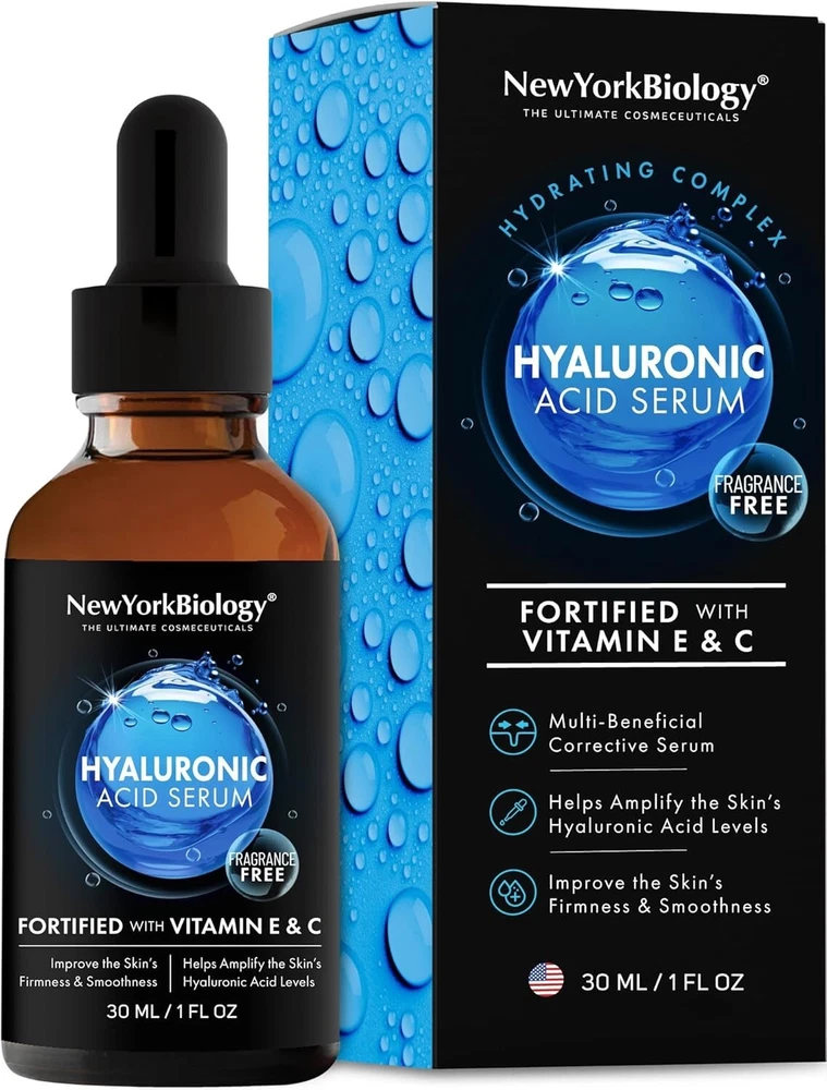 New York Biology Hyaluronic Acid Serum for Face with Vitamins C and E - Professional Strength Hydrating Serum for Dry Uneven Skin - 1 Fl oz PURE HYALURONIC ACID – Hyaluronic Acid facial serum is an intensely hydrating face serum that refreshes dehydrated skin. Helps retain moisture all day and results in suppler and smoother appearing complexion. HYDRATE & FIRM SKIN - Our Hyaluronic Acid moisturizer serum can deeply nourish and moisturize the skin so that the skin may appear brighter, firmer, and more rejuvenated. FORMULATED WITH VITAMIN C & E – This hydrating moisturizer serum was crafted using the highest quality ingredients and fortified with Vitamins C and E to help accomplish softer and glowing skin. LIGHTWEIGHT & EASILY ABSORBED - Hyaluronic Acid anti aging moisturizer can add deep hydration to aging and dry skin. Antioxidants in Hyaluronic Acid can smoothen the skin’s appearance and may help minimize the appearance of fine lines and wrinkles. MADE IN THE USA - Our Hyaluronic Acid Serum is made using the Highest Quality Ingredients. Note: This Product is designed to deliver optimal results, offering high-quality performance and satisfaction. Please note that individual experiences and outcomes may vary based on personal use, preferences, and unique circumstances. For best results, we recommend following the provided guidelines and ensuring the product is used as intended. Product result may vary for every individual. NOTE Hello Buyer, Thank you for your interest in our product! Please note that I am a reseller, and your order will be shipped directly from our nearest warehouse to your address. If you have any questions or need assistance, feel free to reach out.