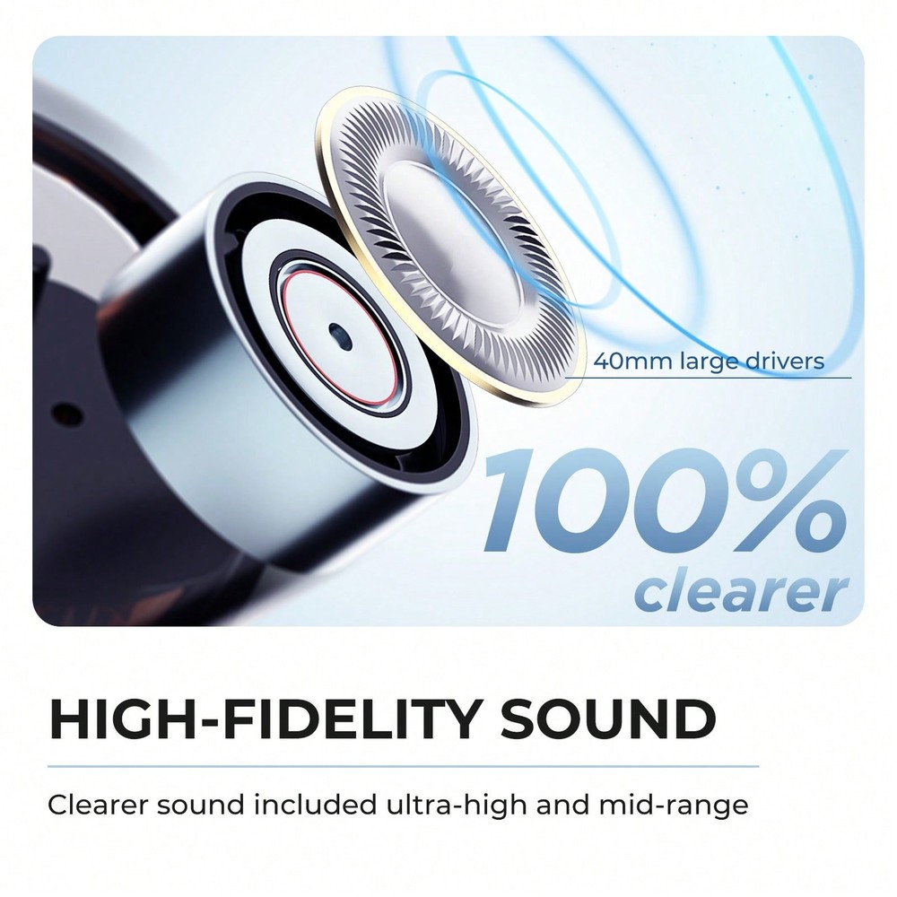 Immerse Yourself in Music with No Distractions - Our SE7 wireless headphones feature enhanced active noise technology, reducing up to 95% of low-frequency noises around you. Enjoy your music without any interruptions, even in noisy environments, and get fully immersed in your favorite tunes when owning SE7 active noise cancelling headphones. Crystal Clear Calls, Anytime, Anywhere - With premium built-in microphones and ENC technology, our SE7 wireless headphones provide crystal clear and stable hands-free calls. No more poor or intermittent conversations. As SE7 headphones with mic, stay connected with your circle wherever you are. Comfortable, Lightweight Design for All-Day Listening - Our SE7 over ear headphones are designed for ultimate comfort and relaxation. The lightweight design and super imitation protein leather make for a no-pressure and comfortable fit, so you can wear them all day long with ease. Amazing Audio Quality for a Truly Immersive Experience - With advanced speaker diaphragm and chip, our SE7 headphones deliver impeccable sound quality. The 40mm Large Aperture Drivers transmit every detail of audio to your ears perfectly, so you can hear your music exactly as it was intended to be heard. 30 Hours for Listening - A full charge for 30 hours of continuous music playback time. Adjustable headband for a more comfortable fit. Having a longer time for comfortable listening with our SE7 wireless headphones is never a difficulty. Include components: SE7 headphone, charging cable,3.5mm aux cable, user guide, and portable case.