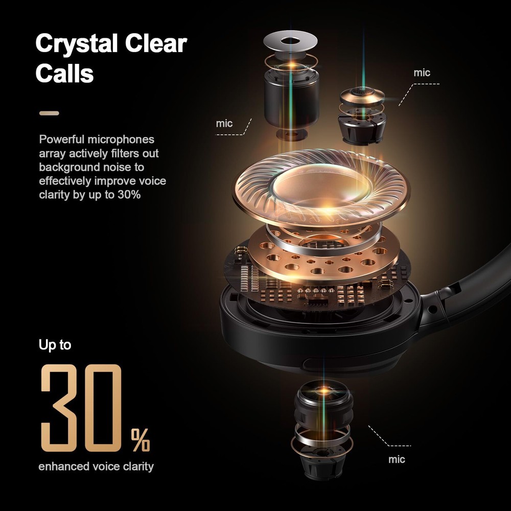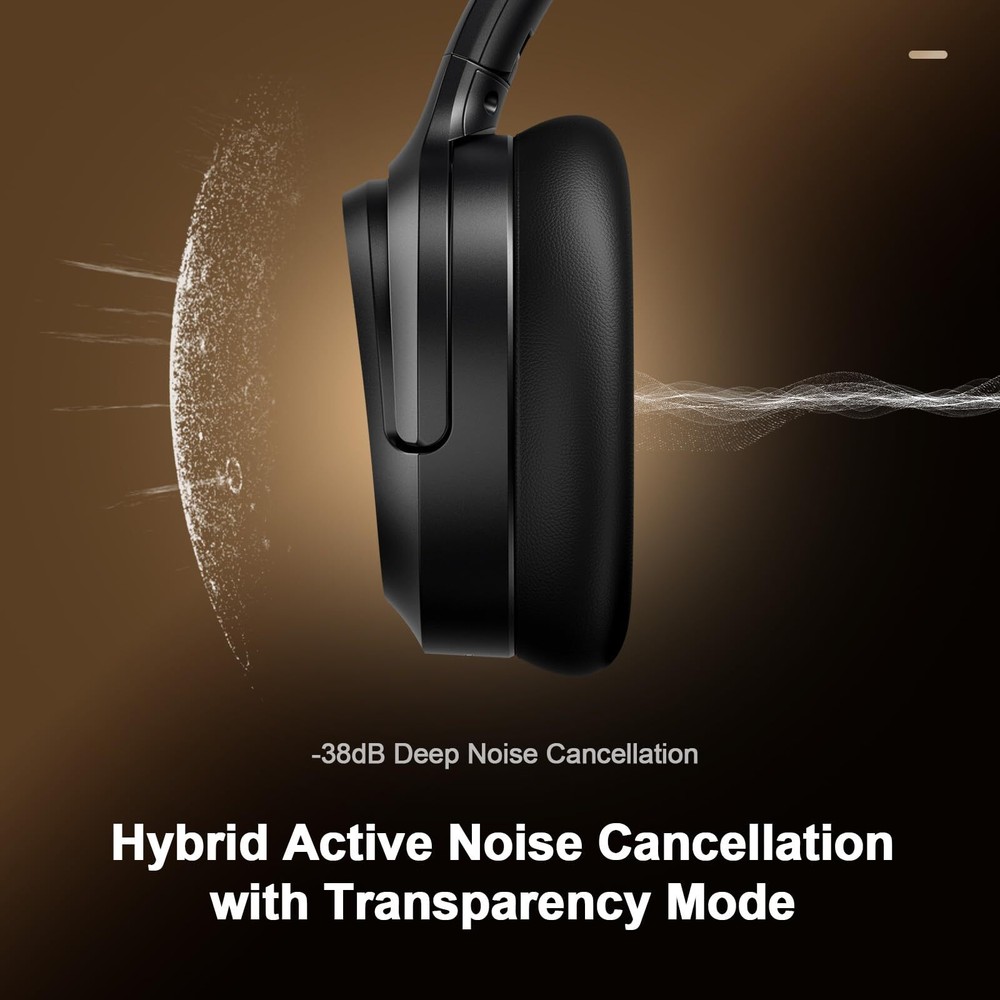 【Superior Noise Cancelling】With dual noise sensors technology, the ANC microphones detect and filter out up to 95% of low-frequency ambient sound to ensure nothing distracts you from your personal space. Transparency mode lets the sounds in so you can interact naturally with your surroundings 【Up to 140H Playtime】The wireless headphones play up to 80 hours of music in noise cancelling mode. Standard mode extends the playtime up to 140 hours, while a quick 5-minute fast fuel charge provides up to 3 hours of playback when you're low on power 【Immersive Sound】The 40mm drivers produce a wide frequency range that uncovers rich detail of sound with thumping bass and crisp highs, thanks to titanium-plated diaphragm and stonger magnets, which deliver exceptional audio quality and unmatched sound 【Crystal Clear Calls】Triple-Microphone array with VDCNN Neural Network, actively identifies and suppresses background noise and helps pick up your voice on phone call, improving the clarity of your voice by up to 30%, so it's heard clearly 【Premium Comfort】Our over ear headphones are designed with your comfort in mind. The ultra-soft memory foam ear cushions, adjustable headbands and 90° swivel joints provide a comfortable fit, while the construction ensures that they can withstand your daily wear 【Multipoint Connection】Bluetooth 5.3 provides a strong, reliable connection to your device up to 50ft (no barrier), allows for two-device connectivity at once, enabling you to move between devices seamlessly. Campatible with most Bluetooth enabled devices and easily activate voice assistant as you need