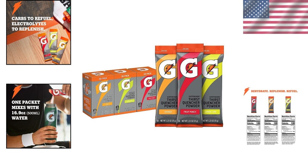 Hydrating Thirst Quencher Sticks: 30 Pack of Fruit Punch, Orange & Lemon Lime ‹ › ‹ › ‹ › ‹ › ‹ › ‹ › ‹ › ‹ › ‹ › Hydrating Thirst Quencher Sticks 30 Pack of Fruit Punch, Orange & Lemon Lime Features: Includes 10 Thirst Quencher powder sticks each of Fruit Punch, Orange, and Lemon Lime flavors. Replenishes essential electrolytes lost in sweat. Carbohydrate energy for optimal fuel replenishment. Trusted by professional athletes, tested in the lab. Forty of legacy and research in hydration science. Hydrates better than water, ensuring you stay at the top of your game. Benefits: Restores hydration quickly and efficiently after intense physical activity. Helps replace critical electrolytes to combat fatigue and dehydration. Augments carbohydrate energy stores, ensuring peak performance. Convenient and portable for on-the-go hydration. Perfect for various sports and outdoor activities such as camping, beach outings, picnics, and tailgating. Why choose the Hydrating Thirst Quencher Sticks? In a world where performance meets hydration, the Hydrating Thirst Quencher Sticks stand out as the premier choice for athletes and outdoor enthusiasts alike. With a perfect blend of delicious flavors - Fruit Punch, Orange, and Lemon Lime - these sticks provide you with the essential electrolytes needed to restore balance and energy after each strenuous activity. Whether you’re on the field, at the beach, or simply enjoying nature, this 30-pack is designed to fit seamlessly into your active lifestyle. Don't settle for ordinary hydration; elevate your performance with a trusted hydrate that has a legacy of success. Grab your Hydrating Thirst Quencher Sticks and keep your thirst quenched anywhere, anytime! Shipping Free & Fast Shipping - We offer free shipping to most of the USA with a normal delivery time of 3-7 days. However, due to the current situation, additional delivery time (up to 3 weeks) may be required for some items. Alternative Carriers - We may use alternative carriers (e.g. USPS, FedEx, UPS, etc.) to ensure your package arrives safely and on time. Due to the use of multiple carriers, we are unable to provide a tracking number automatically. Handling Time - Orders are processed and shipped within 1-2 business days of receiving cleared payment. Shipping Restrictions - Shipping to Alaska, Hawaii, Puerto Rico, Guam, and other US territories may incur shipping charges or delivery restrictions. Please contact us before ordering, or your order can be refunded/cancelled. State Restrictions - There may be restrictions based on your state of purchase. For example, certain items may not be shipped to California due to state regulations. Contact for Tracking Updates - If you require tracking updates or have any concerns about the delivery of your order, please feel free to contact us, and we will be happy to assist you. Return 30-Day Hassle-Free Returns - We want you to be completely satisfied with your purchase. If you are not, you can return the item within 30 days of receiving it for a full refund or exchange. Easy Return Process - To start a return, simply contact us and we will provide you with a prepaid return shipping label and detailed instructions. Restocking Fee - There are no restocking fees for returns. However, the buyer is responsible for return shipping costs if the return is not due to a seller's error. Refund Processing Time - Refunds will be processed within 5 business days of receiving the returned item in its condition. Payment We accept all major credit cards, PayPal, and Apple Pay for your convenience. Your payment information is secure and encrypted to ensure a safe and seamless transaction. Please complete your payment within 3 days of purchase to avoid any delays in shipping. Feedback Your feedback is extremely important to us. We strive to provide the best products and customer service possible. If you are satisfied with your purchase, please take a moment to leave us a positive review. If you have any concerns or issues with your order, please contact us before leaving negative feedback. We are committed to resolving any problems and ensuring your satisfaction. Contact Us If you have any questions or concerns, please feel free to out to our customer support team. You can contact us through the eBay messaging system. We are available Monday to Friday, 9:00 am to 5:00 pm EST, and we will do our best to respond to your inquiry within 24 hours. Buy it now and enjoy a pleasant shopping experience! Expiration Date: Gatorade Powder Sticks Unit Quantity: 30 Active Ingredients: Gatorade Powder Sticks Formulation: Powder Main Purpose: Hydration,Electrolyte Replacement,Energy Fuel Flavor: Lemon Lime,Orange,3 flavor variety pack,Fruit Punch Type: Drink Supply: 1 and Longer Volume: 36.9 oz Item Weight: 0.02 lb
