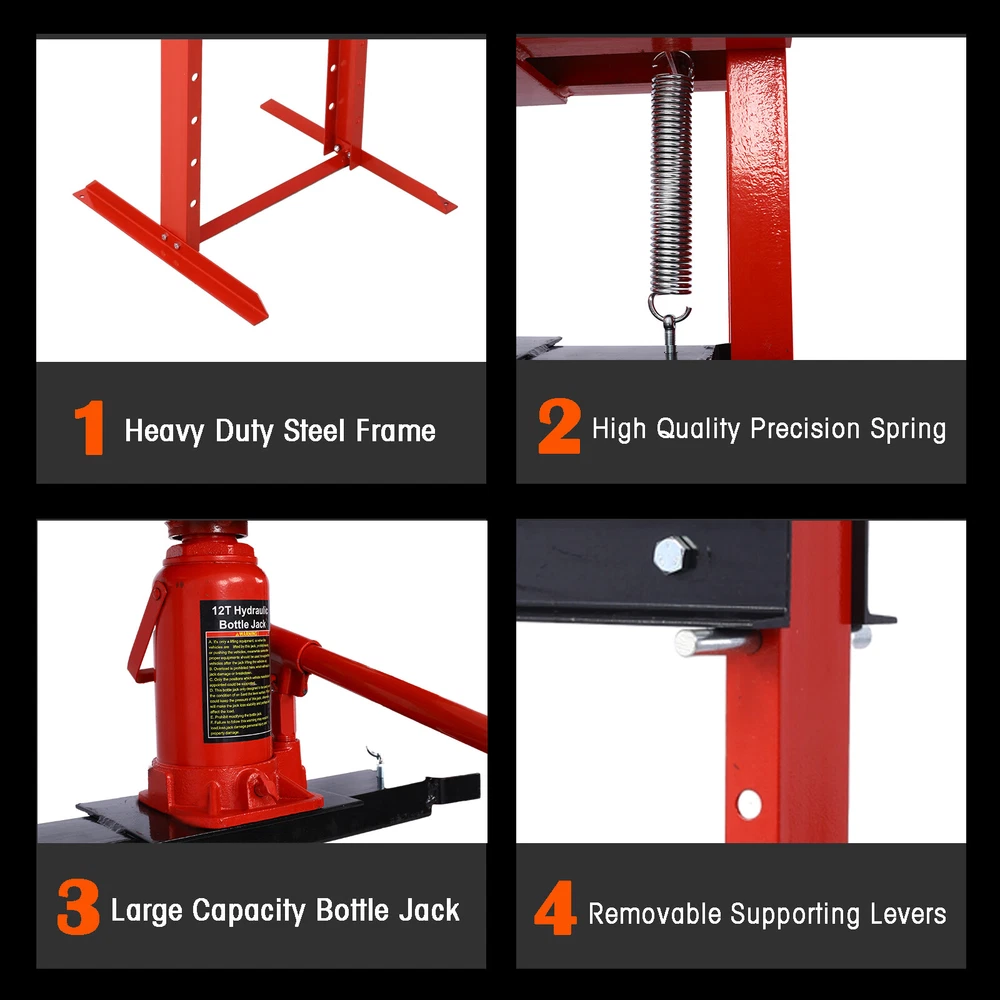Hydraulic Shop Press,12-Ton Capacity,Floor Mount,w/Press Plates,H-Frame Garage F