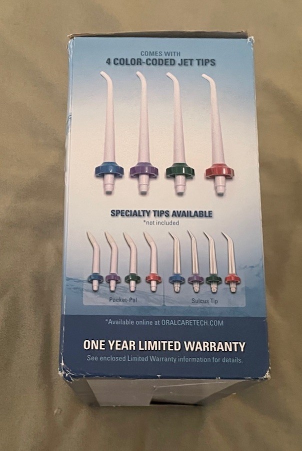 Hydro Floss New Generation of Oral Irrigator w 4 Color Coded Jet Tips. The box is open, but everything inside is completely unused. Everything included is very clean and smoke free. Please check the pictures carefully in order to better assist the condition of the box. I am willing to bundle deal with multiple purchases. I will provide fast and careful shipping. I will respond to all inquiries. Thank you for your time.