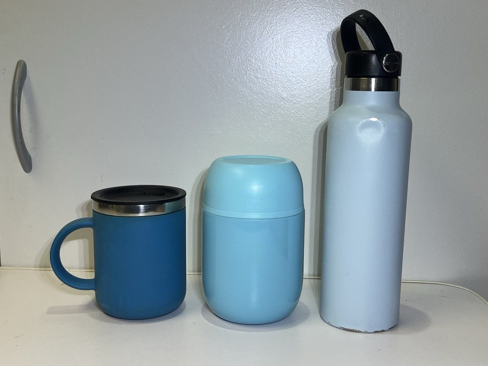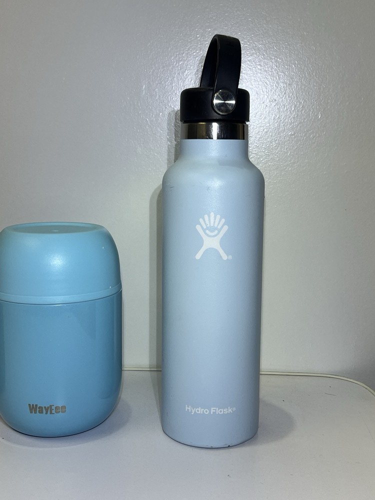 Hydroflask + WayEee Cup Lot (3pcs) H2O Bottle, Coffee Cup, And Soup Canister All of the cups are in good shape Were cleaned really well and have no stains or smells All are vacuumed sealed stainless The 22 oz tall hydroflask has a few chips on the paint near the bottom and one dent in the side but it still stands up straight and is in good shape.