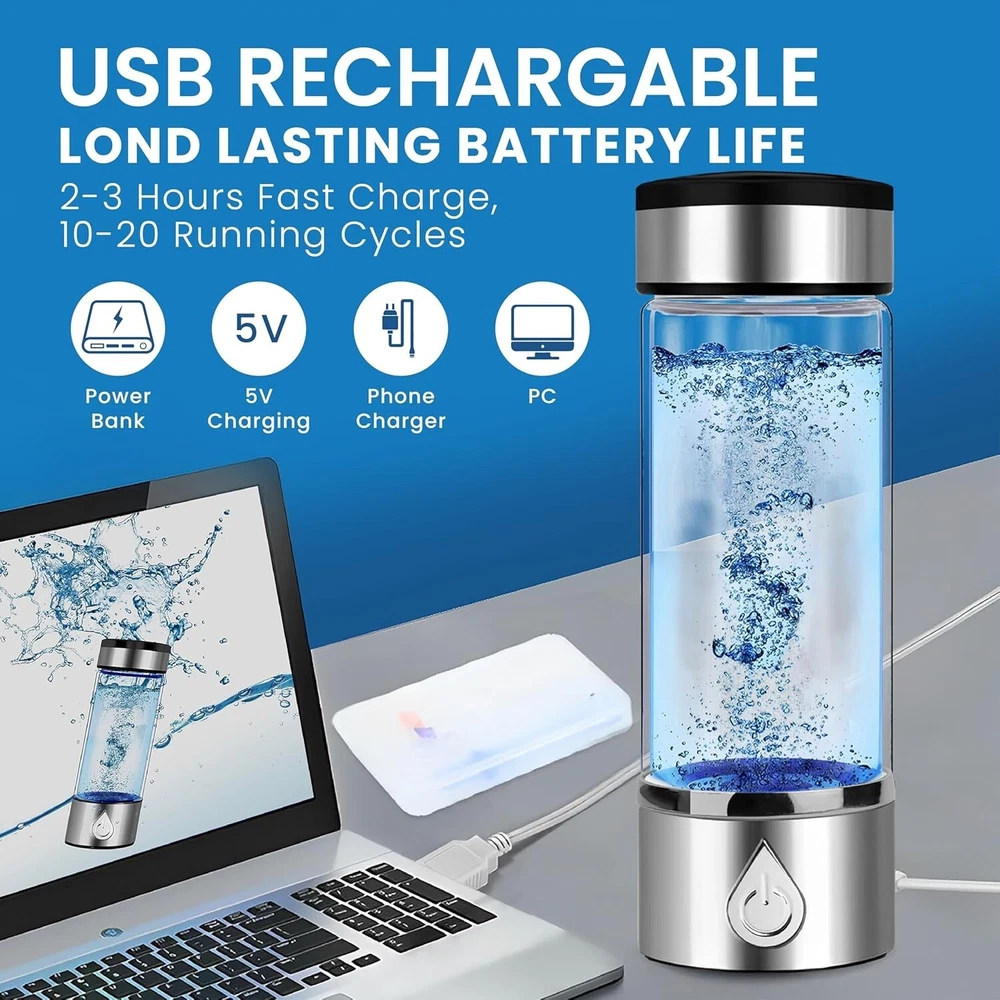 Colour:SilverWorking Time:3 minutes per timeItem Height:20.7 cmSize:20.7 x 7 x 7cm/8.1 x 2.8 x 2.8"Color:SilverManufacturer Warranty:3 YearsPower Consumption:10WSuitable For:HouseholdNumber in Pack:1Please Note::Mineral water is required, purified water cannot be usedProduct Name:Water Ionizer Maker BottleBrand:UnbrandedCountry/Region of Manufacture:UnknownDepartment:Teens, AdultsFeatures 2:USB Rechargeable, SPE and PEM Technology, PortableModel:Hydrogen Rich Water CupBattery:1000mAhType:Water Filtration BottleCharging Time:2-3 hoursItem Width:7 cmCapacity:420 mlMPN:Does Not ApplyMaterial:High Borosilicate GlassVoltage/Power:Applicable 100- -240V/50-60HZ:Features:Rapid Electrolysis, Smart Shutdown, One Button ControlCompatible Model:Does Not ApplyRated Voltage:220V