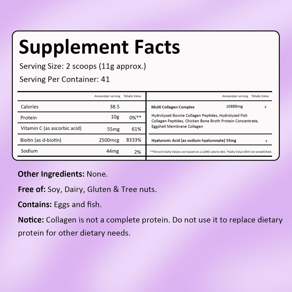 Dissolves instantly in hot or cold liquids—perfect for coffee, smoothies, soups, and morewithout altering taste. 【Pure Multi-Collagen Peptides Powder】Made from high-quality hydrolyzed collagen, our formula provides essential collagen types I, II, III, V, and X to support your overall wellness. 【Supports Skin, Hair, Nails & Joints】This unflavored collagen powder is designed to help maintain the natural health of your skin, hair, nails, and joints. 【Easy to Mix & Versatile】Dissolves quickly in hot or cold liquids, making it perfect for adding to coffee, smoothies, soups, or baked goods without altering the taste. 【Clean & Trusted Formula】Non-GMO, gluten-free, and free from artificial additives, ensuring a pure and safe collagen supplement for daily use. 【16oz Value Size】- Generous Supply for Daily Use