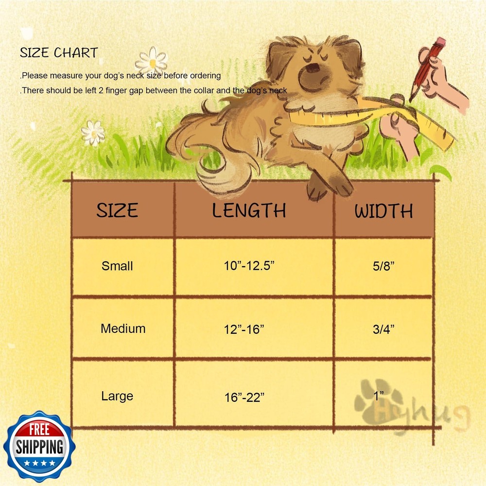 Hyhug Pets Classic Regular Heavy Duty Nylon Dog Basic Collar for Medium Dogs Daily Use Walking Jogging. (Medium, Military Green) Features Size: M, adjustable length 12"-16" ( 0.79" width), for the proper fit when your dog wears it, please measure your dog's neck circumference and refer to the size chart picture we provided to choose the right size. Easy to Put On: This nylon dog collar is classic and stylish, with various colors and sizes. The buckle enables quick wear and removal. An independent loop for dog tags and leashes brings great convenience for daily dog - walking and management. Durable Construction: This dog collar is made of sturdy and high quality nylon material. It also offers a wide variety of color options, and is suitable for dogs of all breeds and sizes, ensuring long-lasting durability. Colorfast: Our dog collars are professionally dyed. The colors penetrate deep into the fibers and attach firmly. Despite exposure to sunlight, rain, or multiple washes, the colors remain vibrant for a long time, enhancing your dog's wearing experience. Made in China: our dog collar inherits the traditional craftsmanship of Chinese manufacturing. Skilled workers carefully produce each collar, combining time-tested techniques with modern design to create a functional and stylish accessory for dogs. Shipping Free & Fast Shipping: We offer free shipping to most of the USA with a normal delivery time of 3-7 days. However, due to the current situation, additional delivery time (up to 3 weeks) may be required for some items. Alternative Carriers: We may use alternative carriers (e.g., USPS, FedEx, UPS) to ensure your package arrives safely and on time. Due to the use of multiple carriers, we are unable to provide a tracking number automatically. Handling Time: Orders are processed and shipped within 1-2 business days of receiving cleared payment. Shipping Restrictions: Shipping to Alaska, Hawaii, Puerto Rico, Guam, and other US territories may incur shipping charges or delivery restrictions. Please contact us before ordering, or your order can be refunded/cancelled. State Restrictions: Certain items may not be shipped to California due to state regulations. Contact for Tracking Updates: If you require tracking updates or have any concerns about the delivery of your order, please feel free to contact us, and we will be happy to assist you. Return Policy 30-Day Hassle-Free Returns: If you are not completely satisfied with your purchase, you can return the item for free within 30 days of receiving it for a full refund or exchange. Easy Return Process: Contact us, and we will provide you with a prepaid return shipping label and detailed instructions. No Restocking Fee: There are no restocking fees for returns. However, the buyer is responsible for return shipping costs if the return is not due to a seller"s error. Refund Processing: Refunds will be processed within 1 business day of receiving the returned item in its original condition. Feedback Your feedback is extremely important to us. We strive to provide the best products and customer service possible. If you are satisfied with your purchase, please take a moment to leave us a positive review. If you have any concerns or issues with your order, please contact us before leaving negative feedback. We are committed to resolving any problems and ensuring your satisfaction. Contact Us If you have any questions or concerns, please feel free to reach out to our customer support team. You can contact us through the eBay messaging system. We are available Monday to Friday, 9:00 am to 5:00 pm EST, and we will do our best to respond to your inquiry within 24 hours. Thank you for supporting our small family business!