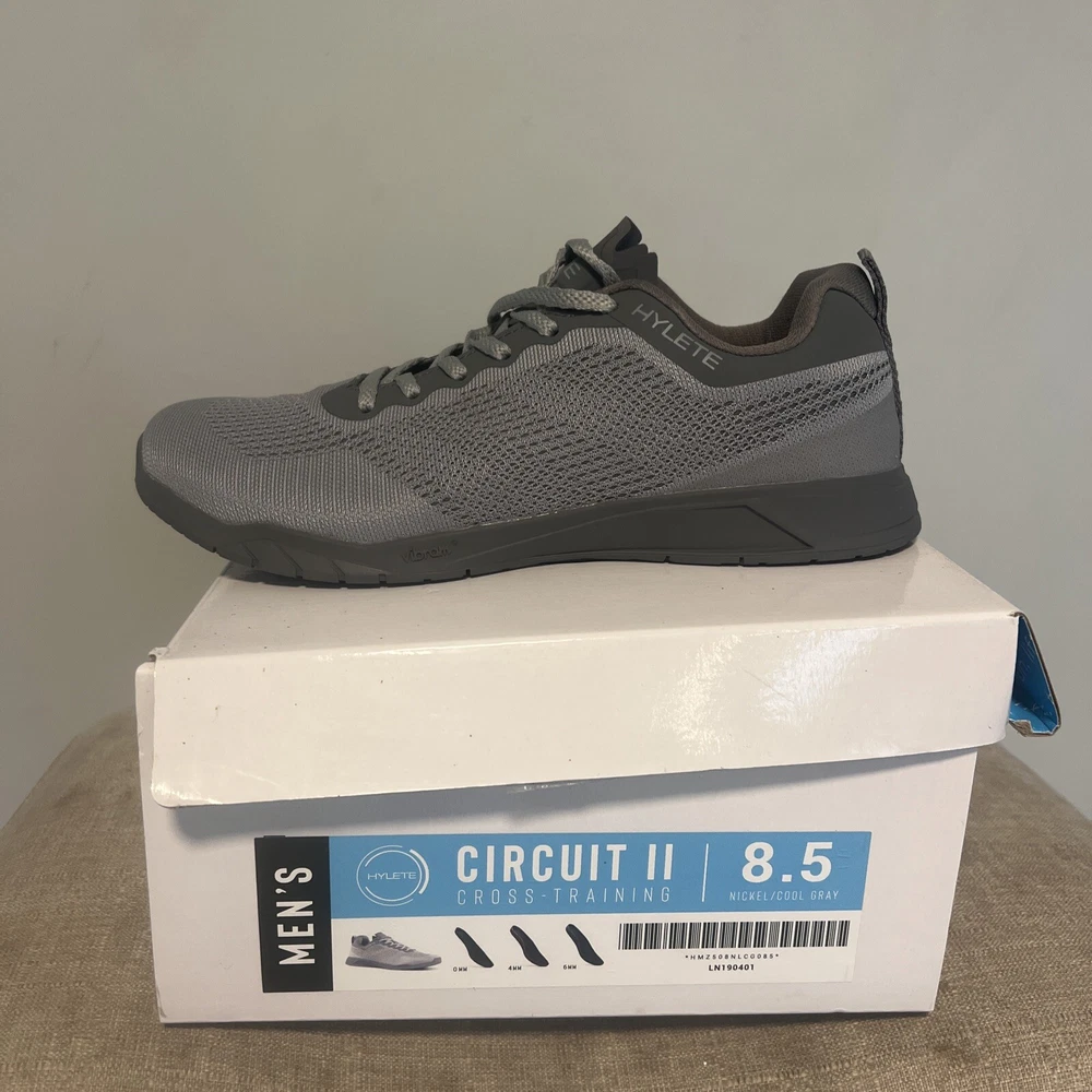 Hylete Mens Circuit II Cross Training Shoe Gray Silver Low Top Lace Up 11 W Box