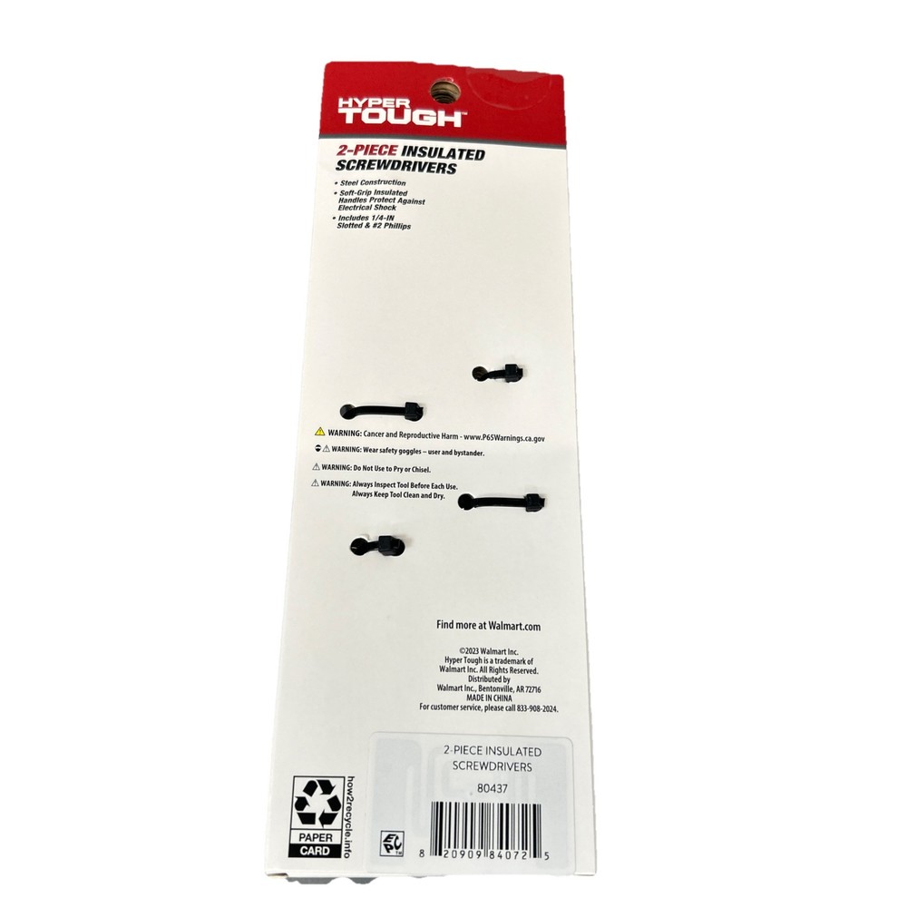 Experience the precision and safety of the Hyper Tough 2-PACK Insulated Screwdrivers, a must-have for any toolbox. This set includes one flat/slotted screwdriver and one Phillips screwdriver, each designed to tackle a variety of screws with ease. The insulated feature ensures that your hands are protected from electric shocks, making them perfect for working on electrical devices or any project requiring screw manipulation in a conductive environment up to 1,000 volts. The screwdrivers are crafted for durability and comfort, featuring a soft grip that provides a secure hold, even in slippery conditions. The robust construction is matched by the convenience of having two pieces in one set, ensuring you're prepared for the job at hand without needing to search for multiple tools. Whether for professional tasks or household repairs, these Hyper Tough screwdrivers are a reliable choice for any user.