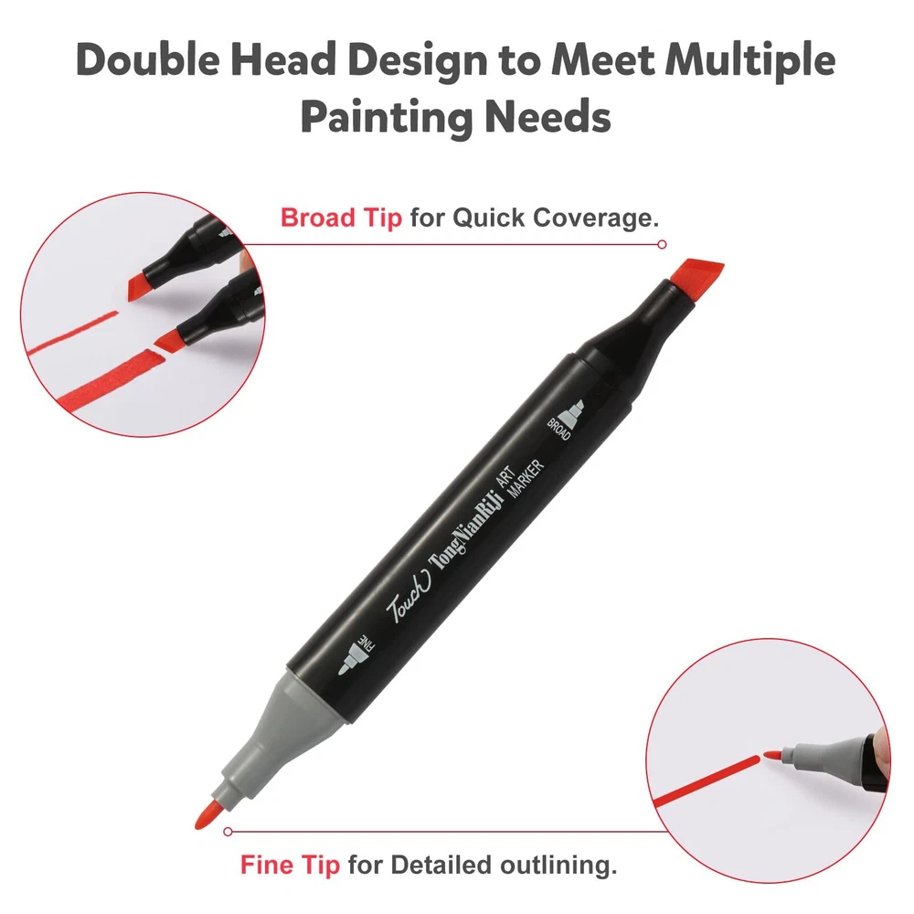 Dual Tip Design Markers: This 120 Colors markers adopted a double-tip design, Broad tip is perfect for quick coverage, fine tip is great for precise details, highlighting, and underlining. Allowing you to write in both thin and thick lines, providing great versatility. Great for use as art markers, sketch markers, permanent markers, alcohol based markers High Quality Alcohol Markers: High quality permanent markers ink, safe, non-toxic, colors to be laid down clean, smooth and evenly, that resists smudging, fading, and doesn’t smudge. This alcohol markers will last through many art projects with high ink volume, also the great cap design that prevents markers from drying out 120 Vibrant Colors: This professional superior artist quality double-ended permanent art markers. Includes all the primary and secondary color shade tones artists need for drawing, sketching,writing, illustrating, shading. Perfect for using on paper, ceramics, glass, wood, cloth and more Color-Coded Caps: The color-coded caps allow for easing in organization and to identify colors quickly. With its ergonomic square-type pen shape, smooth rounded body and comfortable grip, you can use the marker pens for a long time without feeling tired Portable and orderly: Comes with a zipper carrying bag for storing, Make it easy and convenient to portable carry for traveling or outdoor work. and also comes with extra pen holder for neatly arrange the markers