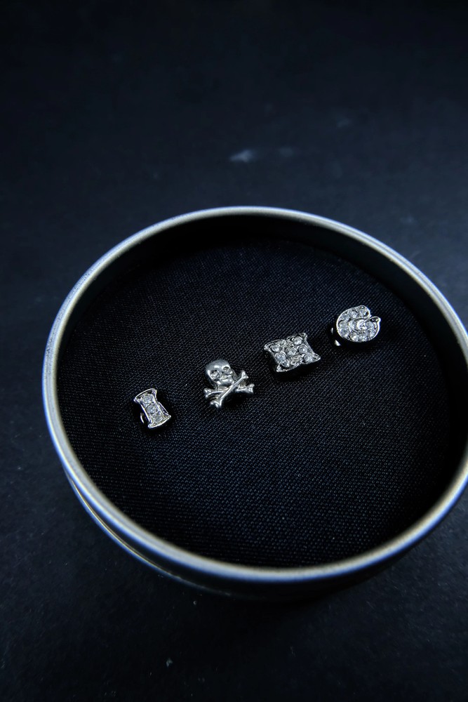 Composition: Stainless steel Condition: 9.5/10 General Notes: Amazing condition Details: Four pieces intended to be worn together to spell out I <3 H G. they can be worn separately or mix-matched. Size: .25 x .25 inches