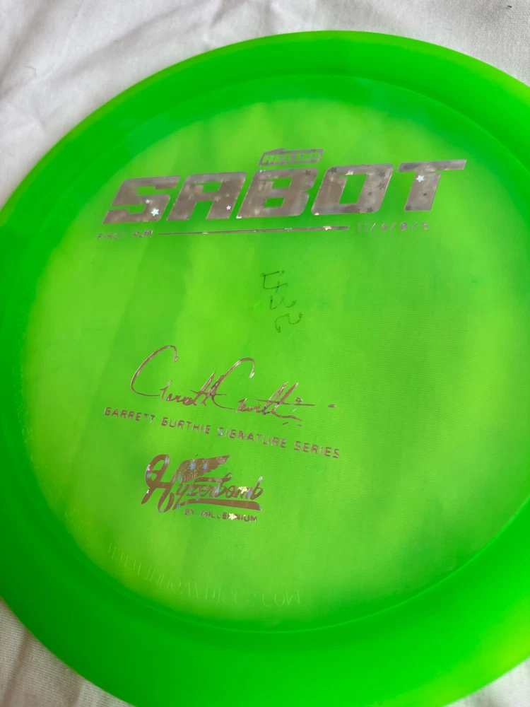 This is the first run Hyzerbomb Sabot brought to you in Recon plastic. Hyzerbomb discs are produced by Millennium, sister company of Innova. This mold is the old Innova Max mold that disc golf OG's know and love. Recon plastic is essentially Innova's Champion plastic. This disc has the flattest of tops and the plastic is moderately gummy. The Sabot is an excellent choice for forehanders and thumber throwers alike but it's also great for a power backhand or headwinds.
