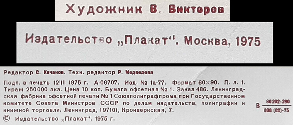 Original slogan on the poster: Я - ГРАЖДАНИН СОВЕТСКОГО СОЮЗА! ПАСПОРТ СССР Literally English translation: I AM THE CITIZEN OF THE SOVIET UNION! USSR PASSPORT POSTER ARTIST: VIKTOROV VALENTIN PETROVICH PRINT YEAR: 1975 SUBJECT: TEACHERS HOLIDAY LANGUAGE: RUSSIAN PRINT RUN: 250.000 PUBLISHED BY: "PLAKAT", MOSCOW SIZE: IN: 22 ½ x 35= CM: 57 x 89 CONDITION: FLAT, VERY GOOD ✯ Description & Historical Background — — — — — — — — — — — — — — — — — — — — — — — — — — This 1975 Soviet poster proudly proclaims: "I am a citizen of the Soviet Union!" Centered on the striking image of a red USSR passport, the composition symbolizes civic identity, pride, and unity under socialism. The large state emblem of the USSR rises in the background like a sun, flanked by iconic landmarks of Moscow and illustrations representing the various Soviet republics. The emphasis on citizenship reflects the significance of being part of a vast multinational union, with shared rights, responsibilities, and a common ideological purpose. The poster was issued during the Brezhnev era, a time of strong emphasis on patriotic education and allegiance to the ideals of the Soviet state. ✯ Style — — — — — — — — — — — — — — — — — — — — — — — — — — Rendered in a vivid red-gold color palette, this poster showcases classic Socialist Realist design, emphasizing monumental symbols like the Soviet emblem and Kremlin tower. The passport is prominently placed, using photorealistic design to contrast with the stylized background of industry and unity. The combination of clean typography and symbolic imagery reflects mid-1970s Soviet aesthetics focused on civic pride and state loyalty. ✯ Condition — — — — — — — — — — — — — — — — — — — — — — — — — — Very good vintage condition with some light edge wear and a small crease on the lower right corner. Colors remain vibrant, and the artwork is well-preserved. Please refer to the image for a full visual assessment.