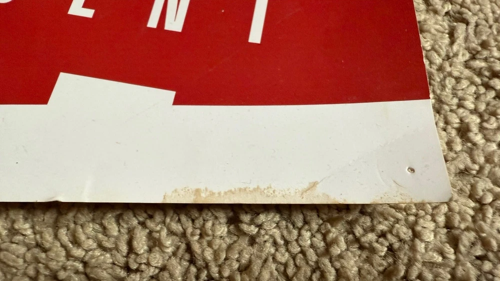This is one of the rare, original signs from The Dark Knight viral marketing campaign! I participated in it from beginning all the way to the end! This is the last one I have! It does have a pin hole in each corner from being on a wall and a slight discoloration in one small spot (as pictured). Last chance to get a piece of Batman/Nolan/Movie/Marketing history!