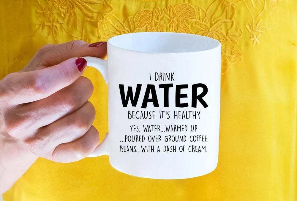 I Drink Water Because Its Healthy Funny Coffee Mug Coffee Mug Mugs Drinking Mug Product Details.. This high quality 11oz. ceramic white mug has a premium hard coat that provides crisp and vibrant color reproduction sure to last for years. Perfect for all hot & cold beverages. The highest quality printing possible is used. It will never fade no matter how many times you wash it. Material: 100% Ceramic. Print both sides. Dishwasher and Microwave Safe. High Gloss + Premium White Finish. Printed in the U.S.A. Personalized & Custom. We support personalized and custom mug to add custom, when placing an order, you can add notes to the "order note" in shipping address section. Also you can contact us directly via message. Shipping Info. Ready to ship in 1 to 2 business days, All products are made-to-order and proudly printed in the United States. Shipped by USPS and DHL, You will receive your order in 5-7 days. Replace & Refund. All products are defective during shipping broken, chipped will be replaced free of charge. You are not satisfied with the product, we will refund 100% money to you. If any other issues arise, please do not hesitate to message, we would be more than happy to assist you.