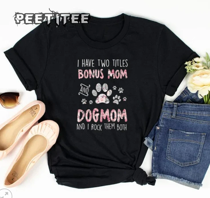 I Have Two Bonus Titles Mom And Dog Mom Floral Mothers Day Dog Mom T-shirt