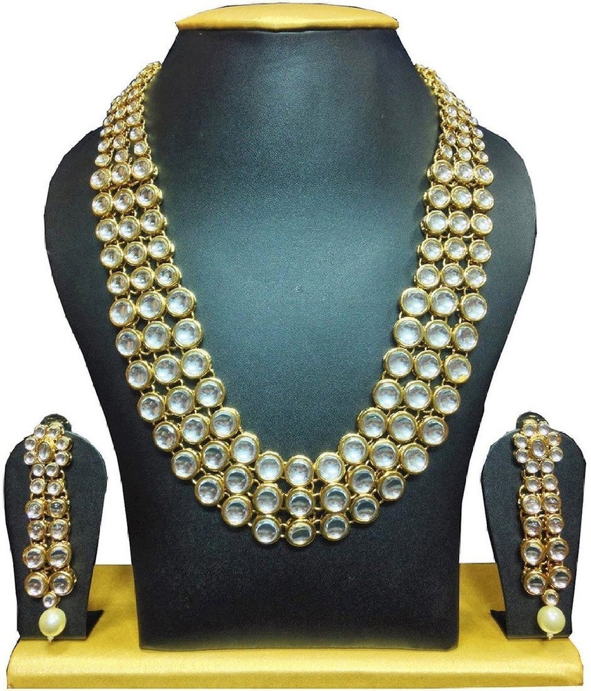 I Jewels Indian Bollywood Gold Plated Faux 3 Layered Kundan Party Wear Jewelry Set for Women (IJ301) Product Details Color: Gold Brand: I Jewels MPN: IJ301W UPC: Does not apply EAN: Does not apply Department : womens Date First Available : May 6, 2021 Manufacturer : I Jewels Brand, Seller, or Collection Name: I Jewels Metal stamp: 18k Metal: alloy Gem Type: not-applicable Chain: Bead Clasp: Lobster Clasp Resizable: No Model number: IJ301W Ca I Jewels presents this beautiful Kundan Jewellery set. This set is light in weight. It is made from good quality of stone and kundan with a blend of gold plating and hence the look of the set is rich. It can be worn in weddings and speical occasions.