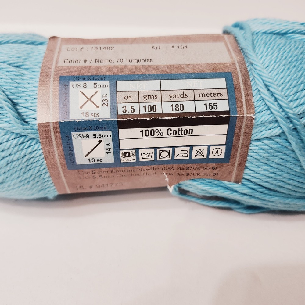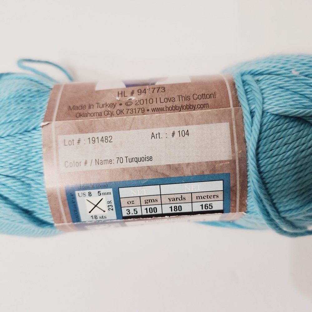 I Love This Cotton Yarn Turquoise 3.5 Oz Skein Soft Crafting