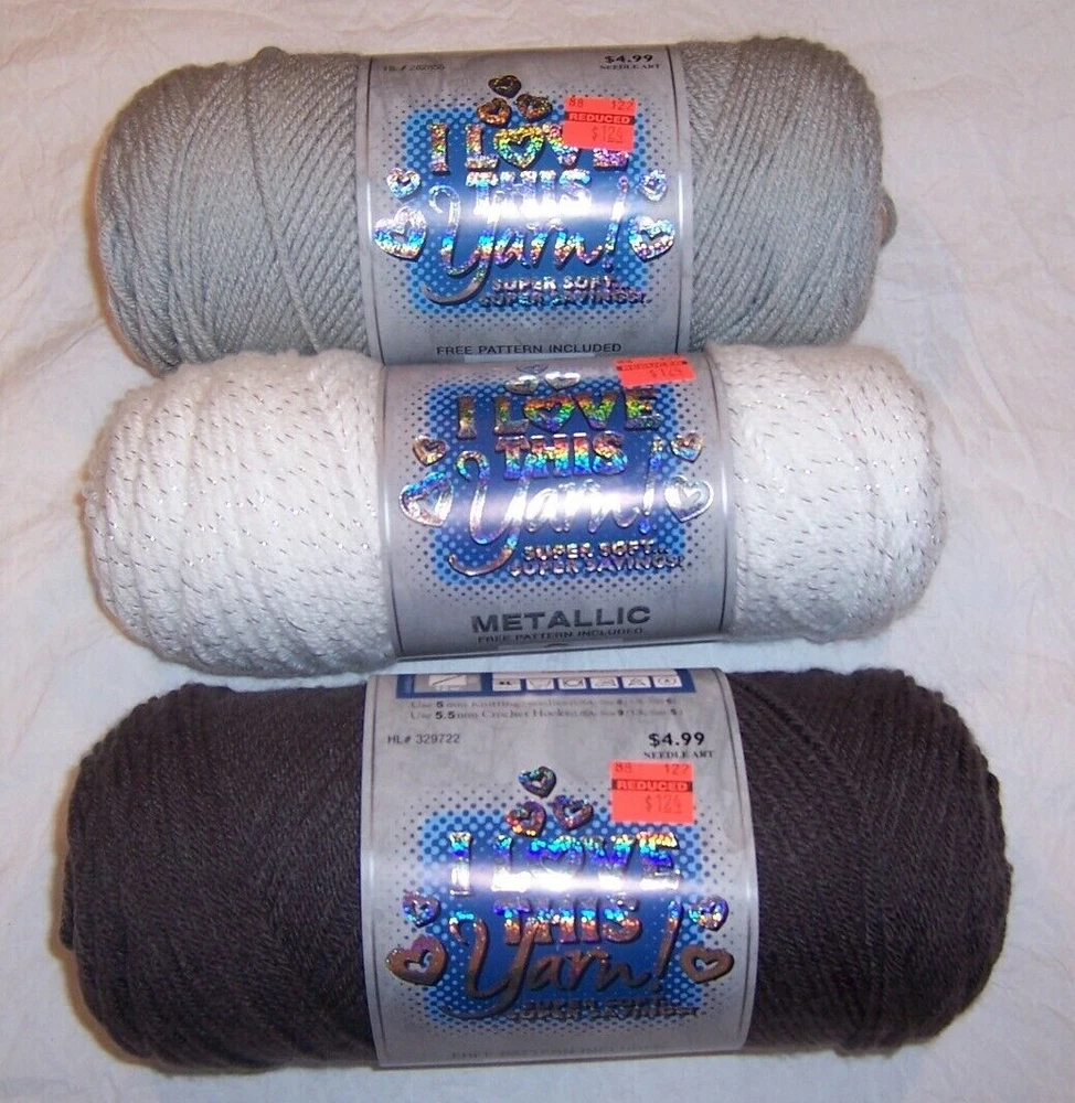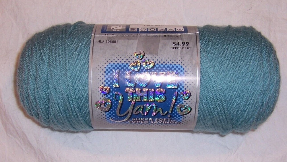 I Love This Yarn - Many Colors Available & Metallic You are purchasing a new skein of I Love This Yarn. Please see the drop down menu for available colors. This #4 weight yarn is made of 100% acrylic, weighs 7 oz. (each skein) or approximately 355 yards and is machine washable and dryable. Please note that the Print skeins weigh 5 oz./252 yards. Multiples of one color DO NOT have matching dye lots. Please review the pictures carefully before purchasing. All items are from a smoke-free; pet-free home. For more beautiful yarn, visit my eBay store, yarngaloreandmore2015. For God so loved the world that He gave His only begotten Son, that whosoever believeth in Him should not perish, but have everlasting life . John 3:16