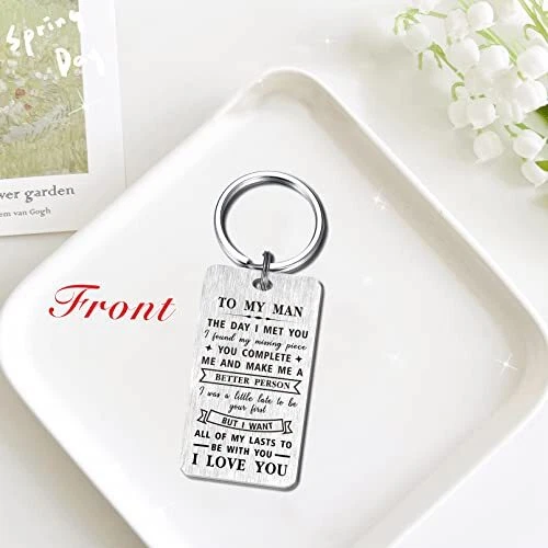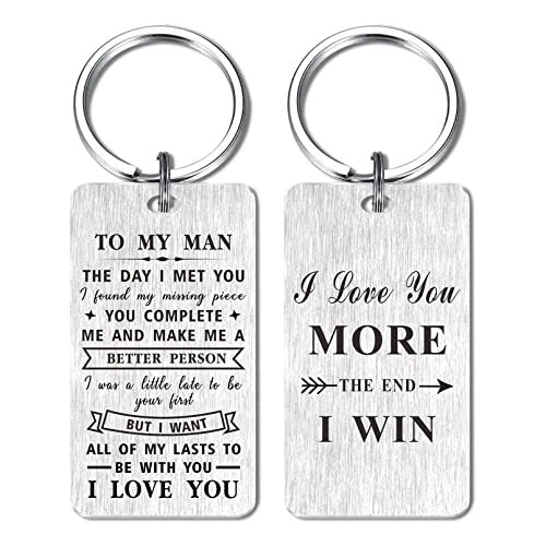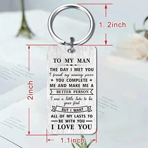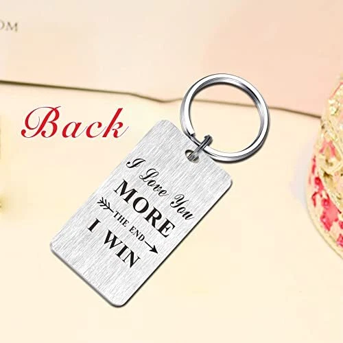 Return Policy Fast Delivery Trusted seller I Love You More The End I Win Keychain Gifts for Him Husband Hubby Boyfriend, To My Man Anniversary Valentine's Day Father's Day Christmas Gifts Product Description Valentines Day Gifts for Men - The loving keycahin is engraved with romantic message: front side: "I love you more the end I win", back side:to my man,the day i met you i found my missing piece, you complete me and make me a better person, I was a little to be your first, but I want all of my lasts to be with you, I love you" to express how much you love your husband or boyfriend and congratulation the valentine's day with him. Wedding Anniversary Gifts - It is a happiness gifts for your man, makes the perfect wedding anniversary gift, sweet anniversary relationship gift for him Husband Gifts from Wife - It is a sweet keychain gifts for your husband when he wears it in daily day and looks at it , like you company with him, which will be a romantic gift to show your love. Material - The unique hubby keychain is made of high quality stainless steel, not rust or tarnish and is very durable so it can be treasure for a ! Come with a nice pouch. Size and Weight - The Cousin steel keychain is about 2*1.1 inch. The weight is about 23 gram net. Thick and not heavy so it can use for carry around or as a keepsake Shipping Returns Payment Shipping Shipping is FREE to all addresses other than APO/PO boxes in the lower 48 states. All our stock ships from US-based warehouses. Shipped via USPS or UPS (depending on location and package weight) Unless stated otherwise, all orders will ship within 24-72 hours of your payment being processed. Check our feedback to see the great reviews of FAST shipping we offer. Returns Seller does not accept returns Payment We currently accept payment via eBay managed payments only. Once payment is cleared, we will dispatch your shipment within 1-3 business days. Please refer to the "Shipping" tab for more information regarding shipping speed to your destination.