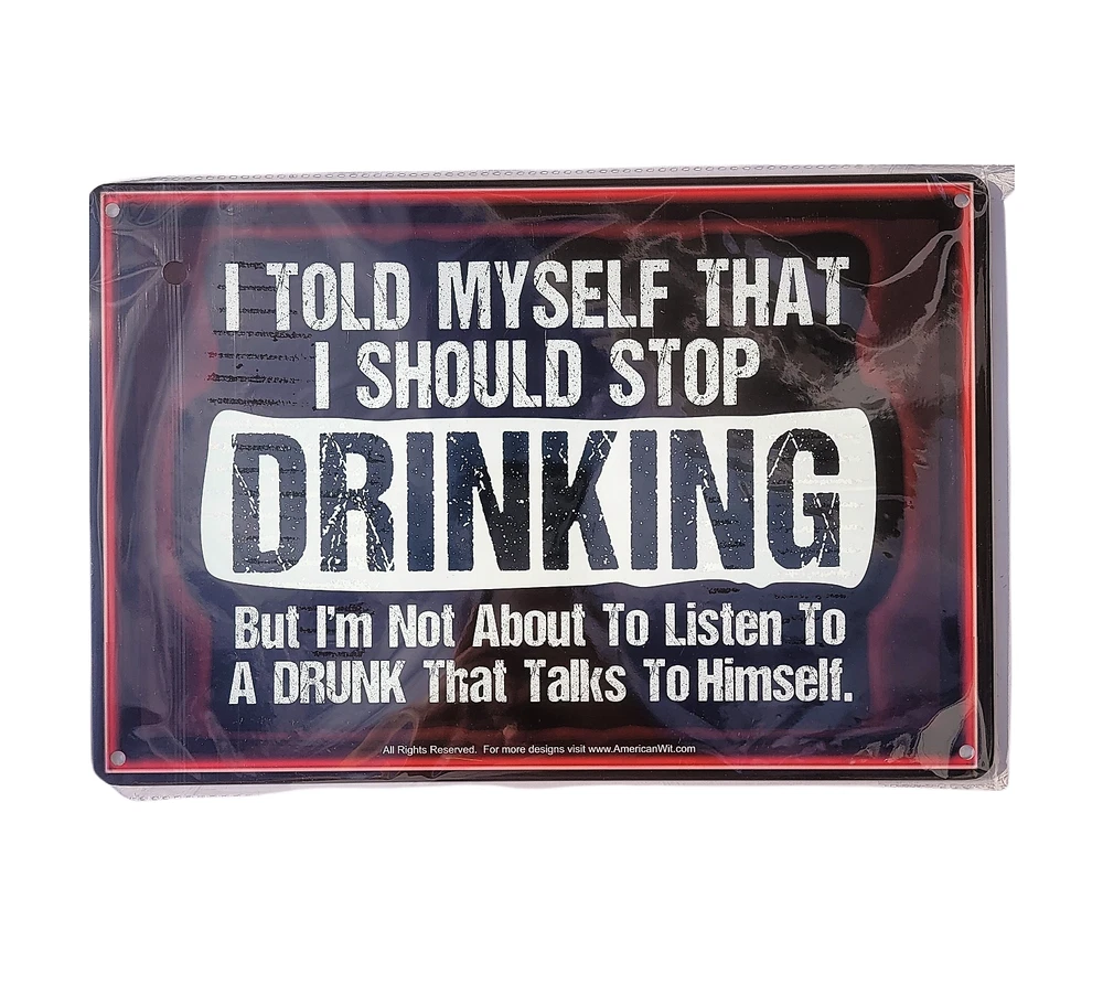Freeboutiquetemplates.com American Wit 8" x 12" Metal Tin Funny Bar Sign Wall Decor Plaque Poster: " I Told Myself That I Should Stop Drinking, But I am Not About to Listen to a Drunk That Talks to Himself" Item Specifications: " I TOLD MYSELF THAT I SHOULD STOP DRINKING But I'm Not About To Listen To A Drunk That Talks To Himself" is the most accurate statement I ever made... but what do I know? This Funny Bar Sign comes in a Rustic Vintage look and will be a perfect addition to any bar! Perfect for a Bar Area or your Man Cave, but could be hanged in Living Room, Bedroom, Den, Dinning Room, Entertainment Room, Patio, Work Place Garage, Hallway, or anywhere else you like! EASY TO INSTALL: These decorative wall art pieces are incredibly easy to install! You can put these up in minutes using thumb pins, screws, wire or string, or strong adhesive strips! High Quality Thick .04mm Aluminum Sign. Size : 8"" x 12"" (20 cm x 30 cm). Fade-Resistant. Has folded edges for safety and stability. Comes in a Plastic Bag. Fast Free Shipping! .⭐⭐⭐⭐⭐ Always free Domestic Shipping!!! Welcome to our eBay store! We're a family-owned business dedicated to providing high-quality products and excellent customer service. We specialize in toys and novelty items, offering a wide range of options to suit your needs. Our inventory includes top brands and products that we personally select and test to ensure the best quality. Whether you're looking for ducks or tin signs, we've got you covered. Our team is always here to answer any questions you may have or provide assistance with any issues. We value our customers and strive to exceed your expectations, so please don't hesitate to reach out to us. Please write a Product Review when you have a chance. Your honest feedback is important to us and helps other shoppers make informed decisions. X410 On Feb 20, 2025 at 18:13:44 PST, seller added the following information: Get business information that counts! - Vendio Counters are active content free.