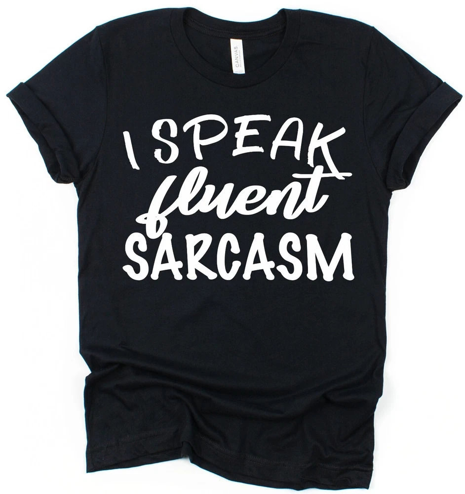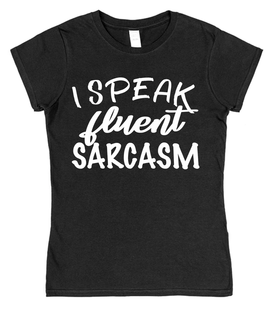 I Speak Fluent Sarcasm Funny Slogan T-Shirt For men, women, adults and teenagers. Brand new 100% Cotton. Regular and fitted styles available. Choose from our regular fit unisex T-shirt style or our ladies fitted style with shaped side seams for a feminine fit. Both are 100% cotton so are comfortable and breathable. They've been made to last with re-enforced seams to eliminate separation and double stitched hem and sleeves for durability. At Click my Clobber, we're specialists in high quality T-shirt printing. We give you a comfortable product that will last and last. Check out our store, we have something for everyone's taste. T-shirt shopping has never been easier! Important Size Information: Sizes S to 3XL are Men's / Unisex T-Shirts Small - Width 46cm, Length 71cm (To fit 34''-36'') Medium - Width 51cm, Length 74cm (To fit 38''-40'') Large - Width 56cm, Length 76cm (To fit 42''-44'') XL - Width 61cm, Length 79cm (To fit 46''-48'') 2XL - Width 66cm, Length 81cm (To fit 50''-52'') 3XL - Width 71cm, Length 84cm (To fit 54''-56'') Sizes 8 to 18 are Women's Fitted T-Shirts with shaped side seams for a feminine fit. 8 (XS) - Width 40cm, Length 61cm 10 (S) - Width 42cm, Length 63cm 12 (M) - Width 46cm, Length 64cm 14 (L) - Width 48cm, Length 65cm 16 (XL) - Width 51cm, Length 66cm 18 (2XL) - Width 53cm, Length 68cm Width is measured across garment 1cm down from armholes Length is measured from highest point of shoulder to bottom edge of garment. Please feel free to contact us if you have any questions or if you can't find what you're looking for. We always do our best to help.
