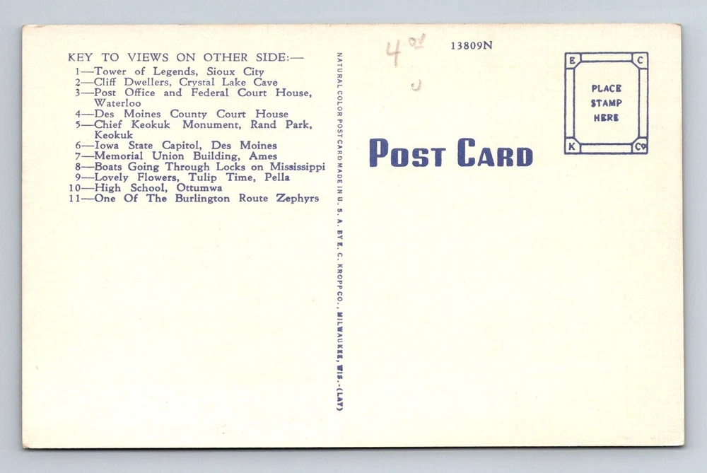 Original/Licensed Reprint: Original Era: Vintage Postage Condition: See Image Region: Iowa Type: Printed (Lithograph) Country/Region of Manufacture: Unknown Country: USA Theme: Cities & Towns City: Iowa Subject: Cities & Towns Unit of Sale: Single Unit