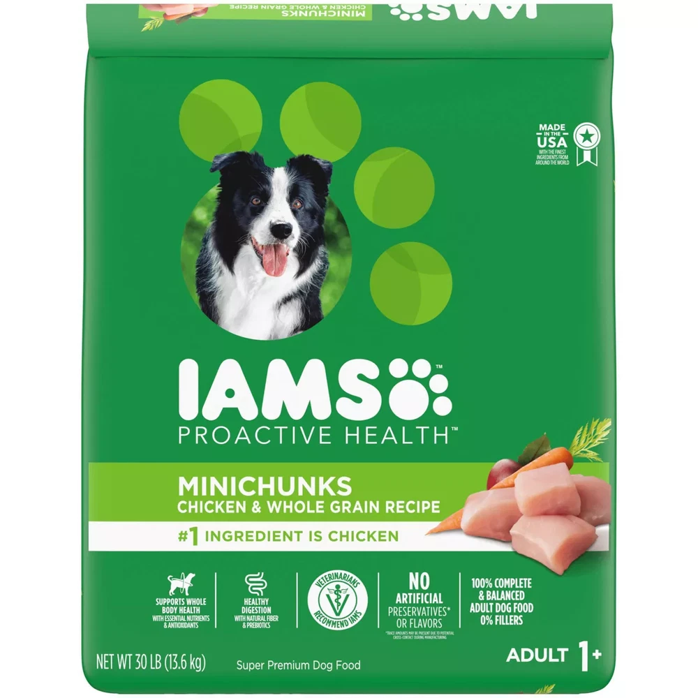 Dear buyer, before you buy, we need to communicate one thing with you. Due to the logistics restrictions of our store, some freight addresses and warehouse addresses cannot be shipped. Please understand, but please rest assured that the probability is very low, about 3%. If you are unlucky and cannot deliver to your address, we need to refund you a full amount. Please be aware that if you cannot accept this, please order with caution. Thank you! Highlights Complete and Balanced for Adult Dogs: 100% complete and balanced adult dog food, 0% fillers, supports vibrant whole-body health with essential nutrients, and is enriched with antioxidants to support a strong immune system Supports Healthy Digestion: Made with a tailored blend of natural fiber and prebiotics, this dry dog kibble supports healthy digestion Provides Whole-Body Health: Formulated to support whole-body health, including 7 essential nutrients to help support a healthy heart Supports Immune Health: This delicious recipe is enriched with antioxidants to help maintain a strong immune system Helping Keep Pets Healthy for Life: With a portfolio of wet and dry food for puppies, adult dogs, and senior dogs, the IAMS brand provides tailored nutrition for every pet’s unique needs at every stage of life 7 lb. Bag: Contains one (1) 7 lb. bag of IAMS PROACTIVE HEALTH Minichunks Adult Dry Dog Food with Real Chicken and Whole Grains Description The smaller kibble your dog loves with the nutrition you can count on from IAMS. IAMS PROACTIVE HEALTH Minichunks Adult Dry Dog Food features a smaller kibble size that makes mealtime more enjoyable for particular pups. This tasty dry dog recipe is made with real chicken as the first ingredient, includes 7 essential nutrients for a healthy heart, and is enriched with antioxidants to help support your dog’s immune health. IAMS MINICHUNKS helps your dog stay healthy on the outside, too—Omega-6 fatty acids in this recipe support healthy skin and a soft, shiny coat. Help keep your dog healthy, happy, and playful for life with tailored nutrition from IAMS dog food.