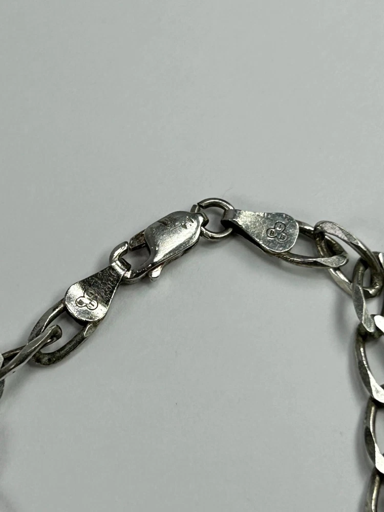 This durable and sleek sterling silver Figaro chain bracelet adds a classic touch, suitable for both everyday wear and formal occasions. • Figaro chain design • Lobster claw clasp closure • Unisex style • Lightweight and comfortable to wear anytime • MARKED IBB makers mark • Sterling Silver purity with 925 MARKED on clasp, and on both sides of loops holding the chain. Length end to end: 7.5" Made with sterling silver Made in Italy #925 #925sterlingsilver#sterlingsilverbracelet#sterlingsilver#sterlingsilverfigarochain#figarochain#925silver#figarochainbracelet#unisexsterlingsilver#unisexsterlingsilverbracelet