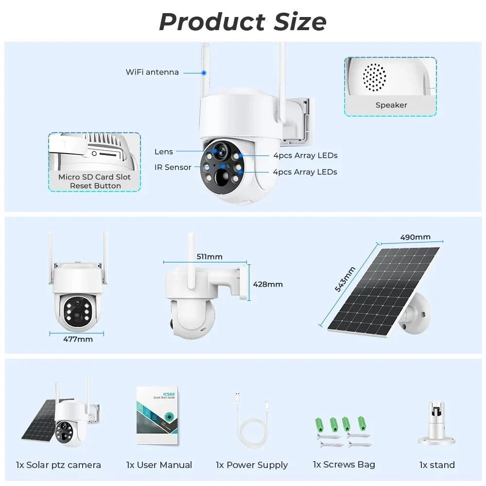 You may also like TAC 2 in 1 Hunting LED Rifle Flashlight & Green Laser Sight Combo For 20mm Rail 35.99 USD Free shipping 1000Miles Green Laser Pointer Pen USB Rechargeable Visible Beam Light Lazer 6.99 USD Free shipping 5mW Adjustable Blue BLaser Pointer Visible Dot Torch Light 39.99 USD Free shipping Red Laser Pointer Red Light Visible Beam Lazer Rechargeable USB Rechargeable 5.99 USD Free shipping Tactical 45 Degree Offset 1" Scope Ring Flashlight Picatinny Light Laser Mount 7.99 USD Free shipping Tactical Red Laser Beam Dot Sight Scope For Rail Weaver 8.88 USD Free shipping Tactical Mini Red Dot RMR Reflex Sight Scope for Glock 17 19 W/20mm Mount 29.88 USD Free shipping 2 MOA Shake Awake Red Dot Sight Scope for 1x20mm Sig Sauer Romeo5 SOR52001 M1913 52.99 USD Free shipping US STOCK compact 4X32 Compact Scope 223/ 308/ Crossbow Scope /w Rings With Clip 26.99 USD Free shipping 14250 CR2 Battery 280mAh Li-ion 3.7V Rechargeable Batteries For Laser Light 3.59 USD Free shipping 1000M USB Rechargeable 1mW Green Laser Pointer Pen Visible Beam Light Lazer US 5.99 USD Free shipping Tactical Rail Red dot Scope Sight Polymer Base Mount for Glock G17 G19 7.98 USD Free shipping 3 Slots 1" Scope Riser Mount Fit 20mm Picatinny Rail for Optics Red Dot Sight 7.89 USD Free shipping 532nm Green Laser Pointer Visible Upgrade Dot Light USB High Power+5 Laser Head 35.99 USD Free shipping Set of Bike Turn Signals Light Tail Rear w/ Smart Wireless Remote Control USB 14.89 USD Free shipping Tactical Green/Red Laser Lazer Beam Dot Sight Scope Mount Rifle Hunt# 8.88 USD Free shipping 11mm Dovetail to 20mm Rifle Base Scope Mount /20mm Extend Picatinny Rail Adapter 5.99 USD Free shipping Universal Barrel Clamp for Shotgun Rifle Flashlight Scope Tube Gun Mount Adapter 8.99 USD Free shipping Product Description ICSEE Outdoor Solar Security Camera 360° PTZ Wireless Wifi Home Battery CCTV Not The video is just to show the effect, our actual goods are still as shown in the picture! Feature: Built-in 7800mAh Battery & Solar Panel Powered Your camera can work 90 days without sunlight, and can work 365 days with sunlight , no worry about weather,No worries to take it down to recharge. PIR Motion Detection Allowing you to monitor what matters without receiving annoying false alerts, get real-time accurate alert notifications in your mobile phone. PTZ Remote Control PTZ: rotates 270° Horizontally and 90° Vertically. Infrared night vision + Full color night vision Infrared night vision mode can provide clear black and white picture even in complete darkness, full color night vision is only automatically awakened in the dark night after APP setting. Clear Two Way Audio Built-in waterproof microphone & speaker, no matter how far away, allow you to interact with pets and family or dissuade unwelcome guests. IP66 Waterproof for Outdoor Use The rugged housing and body make IP camera waterproof. It works perfectly both inside and outside your house, in any harsh weather conditions. Wifi Connection You can connect the camera to the router for networking via wifi, only supports 2.4G wifi (5G not supported) Support TF Card & Cloud Storage (need to pay) Supports TF storage, up to 128GB memory card. cloud storage, support online paid purchase in iCsee App, never worry about losing important videos again. Reliable Remote Access You can access footage via smart device (IOS/Android). Watch live streams and view playbacks instantly, helping you stay informed whenever, wherever. Pack Includes: 1 x Wifi Solar Camera 1 x Solar Panel 1 x Solar Panel Bracket 1 x User Manual Payment Shipping Terms Returns Contact Us About Taxes 1. We accept payment via PAYPAL ONLY . 2. Payment must be made within 4 days of auction closing. (Non-payment may result in a UPI (Unpaid Item) being put on your account. eBay will automatically close your account if you accumulate 4 UPI's total.) 3. TOTAL AMOUNT DUE includes the final auction price plus S&H(Shipping and Handling). 4.S&H will be determined based upon the SHIP TO address, Tax and customs. PLEASE NOTE: S&H DOES NOT INCLUDE DUTIES, LOCATL TAXES OR ANY OTHER IMPORTATION FEES. We are not responsible for any custom duty or import tax. 5. Please list your special requests (color, packages, etc.) in the PAYPAL NOTES SECTION when you make payment. Our working hours Beijing time from 9:00 a.m. to 18:00 p.m . Monday to Friday Item will be shipped from US/DE/UK warehouse;within 1 days after payment received, usually delivery time 24-72 hours. Warranty: 1. One Year Manufacturer's Warranty for defective items (excluding items damaged and/or misused after receipt). Accessories come with a 3-month warranty. 2.If buyer requests a return when there is no quality problem of the item he received,return postage has to be paid by buyer,and postage for the item won't be returned. 3.If item is damaged or defective on arrival,buyer can either requests a refund or replacement,and postage will be paid by us,meanwhile,the item must be returned. Note: A. Customs duties is neither included in the item value nor the postage,which should be in the responsibility of buyers. B. Please check with your country's customs office to determine what these additional costs will be prior to bidding/buying. 1. You have 7 days to contact us and 10 days to return it from the date it was received. WE WILL ISSUE YOU A REFUND OR REPLACEMENT ! 2. All returned items MUST BE in the original packaging and you MUST PROVIDE us with the shipping tracking number , specific reason for the return, and your eBay ID . 3. We will refund YOUR FULL WINNING BID AMOUNT, upon receipt of the item in its original condition and packaging with all components and accessories included, AFTER BOTH Buyer and Seller cancel the transaction from eBay. OR, you may choose to have a replacement. 4. Return shipping is to be paid by the Buyer . Our office hours are: 9:00 a.m to 6:00 p.m (GMT +8) of Monday to Saturday. And our office is closed on Sunday and public holidays (China). W