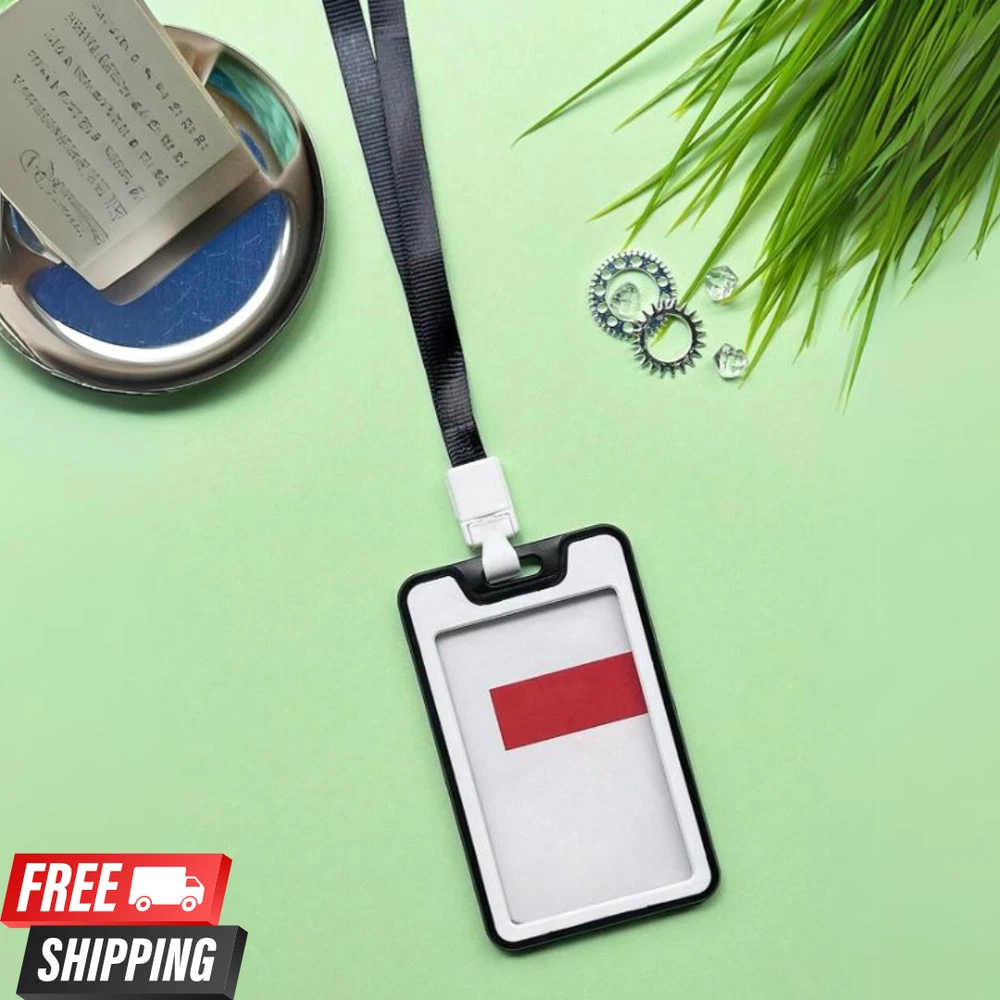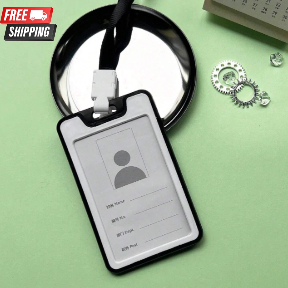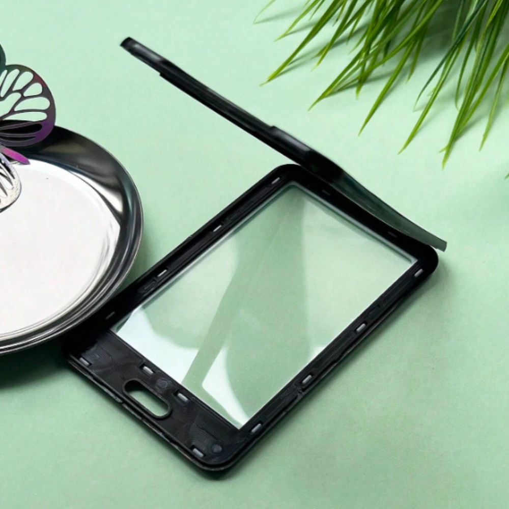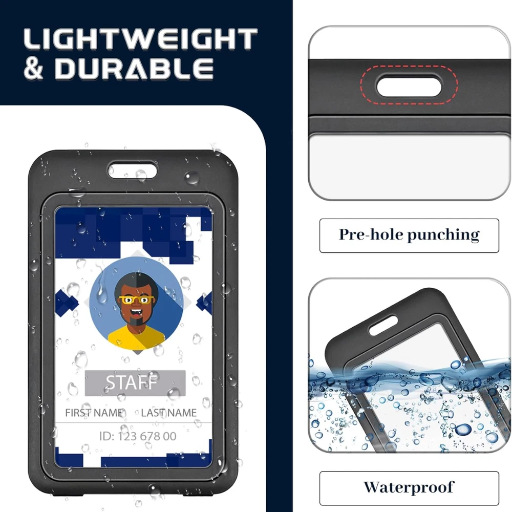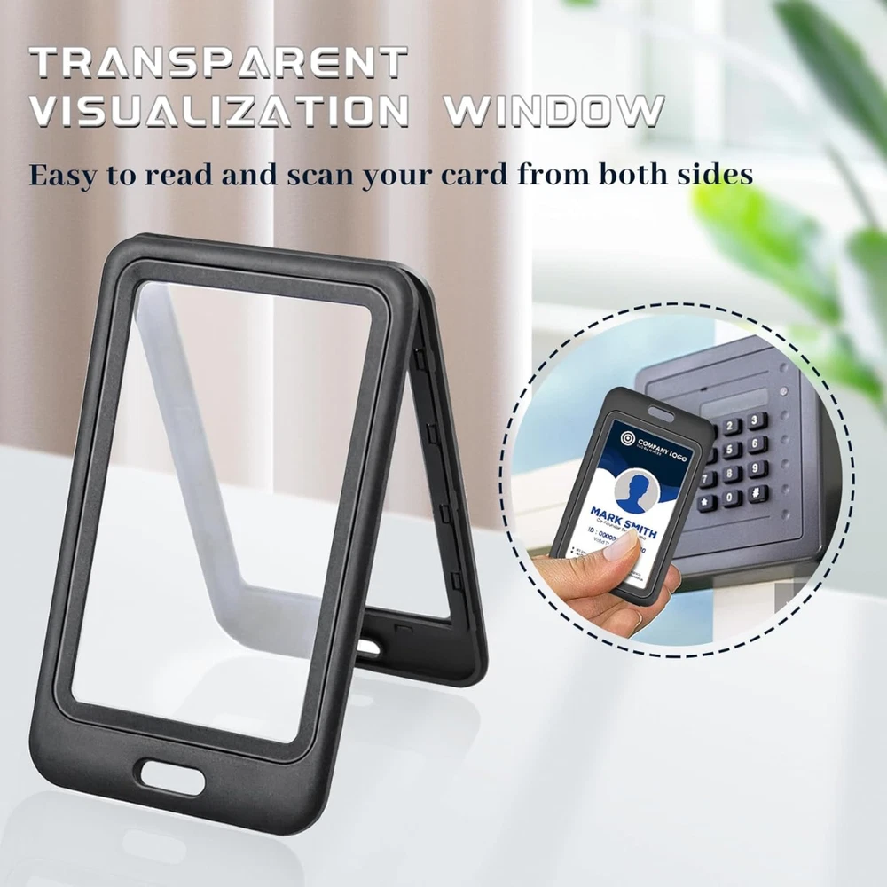 ID Badge Holder with Double-Sided Windows Hard Plastic Vertical ID Card Holder