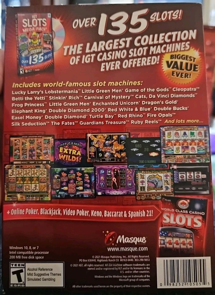 Release Year: 2021 Publisher: Masque Platform: PC UPC: 098252105055 Genre: Casino & Cards gtin13: 098252105055 Game Name: IGT Slots Mega Pack