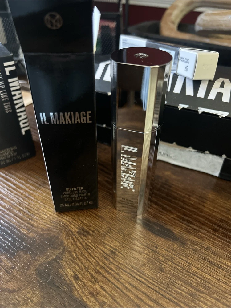 IL MAKIAGE - my daughter ordered a subscription box. She loved the make up but considering she does not wear that much makeup. It has stocked up. This was sent to me us April 1st. It is new. It has never even been tested. It was opened to take pics. I know makeup is something I am extremely picky about. Smoke free, pet free, ocd kept home. Includes: 1 FLAWLESS BASE FOUNDATION - WOKE UP LIKE THIS SHADE 20. ( full size) 30 ML 1 F**k I’m FLAWLESS ( full size) 7 ML 1 NO FILTER PRIMER - ( full size) 25 ML 1 BLACK EYELINER - (full size) ANY QUESTIONS PLEASE ASK.
