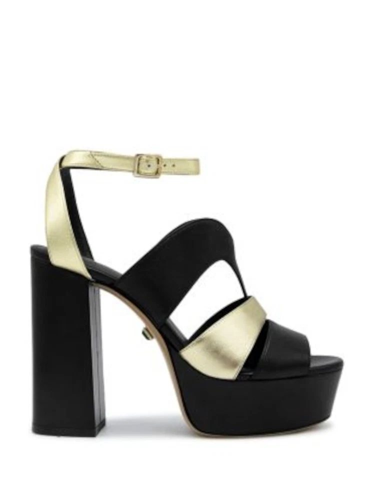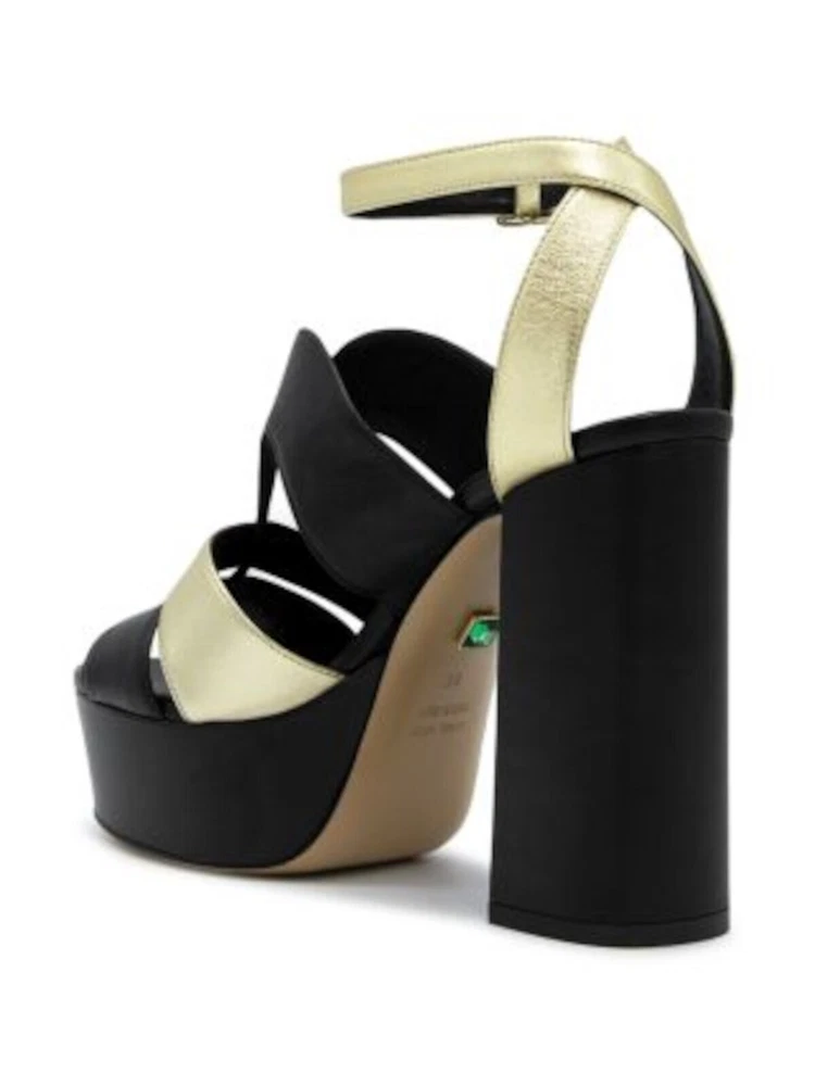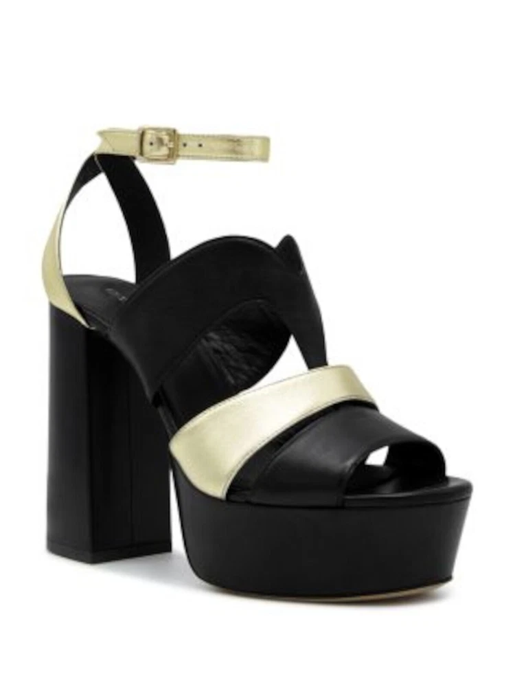ILIO SMERALDO Womens Black 1-1/2" Platform Open Leather Heeled Sandal 37