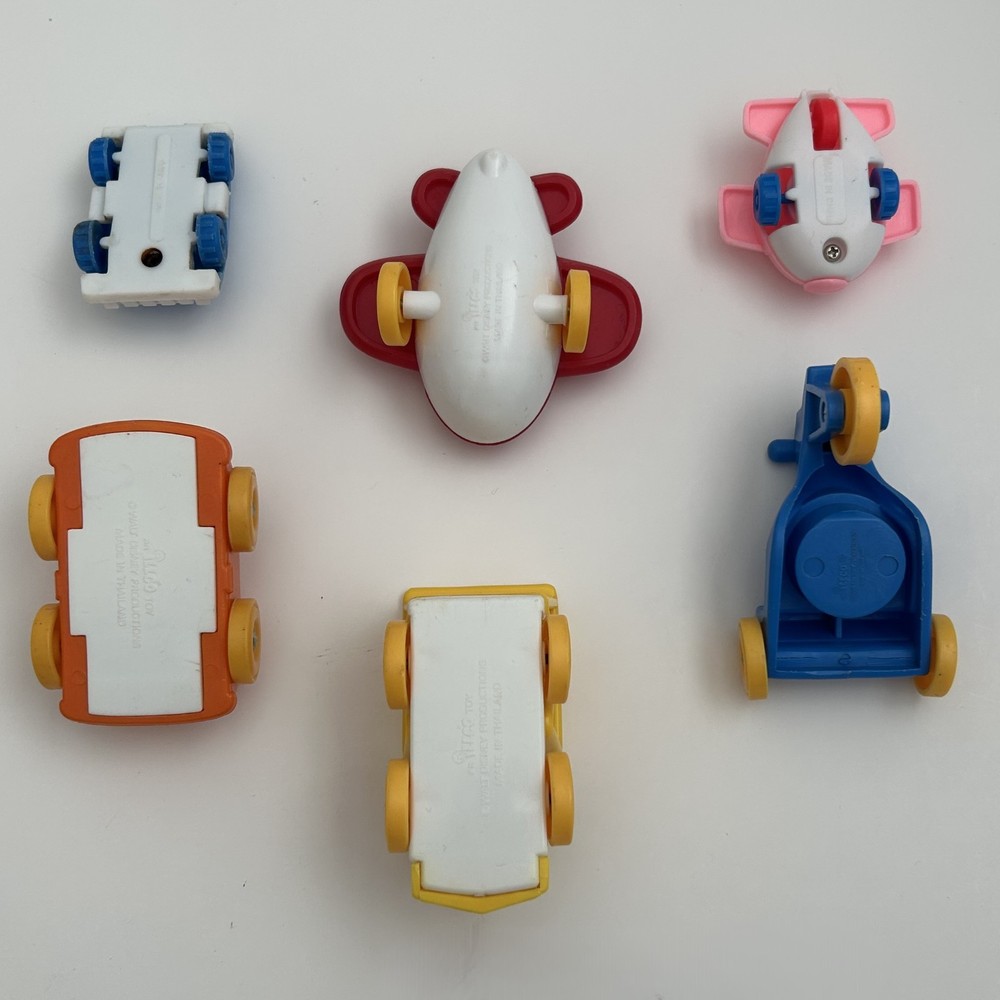 The product is a vintage set of ILLCO Disney Productions featuring cars, planes, trains, scooters. Made by ILLCO Disney Productions, these toys are designed for preschool children aged 3-4 years old. Manufactured in Thailand, the set includes a variety of Disney-themed vehicles for imaginative play. Perfect for collectors or young children who enjoy pretend play, this nostalgic set brings back memories of classic toys from the past. Cars are suitable for "little people" Disney characters made for the cars, not included. This product also includes vehicle set of 3 figures from the 1980s McDonald's toy promotion.