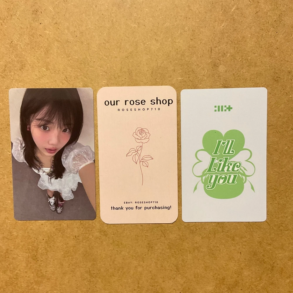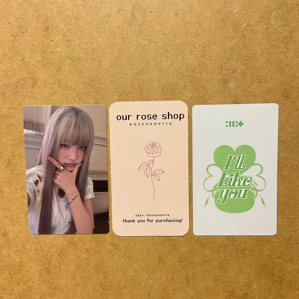 No restocks planned. (Please check profile for information on restocks.) All photocards are authentic, original goods. No returns on photocards. For US buyers : USPS tracked shipping from the US. If you add $70+ of photocards to your cart, you will automatically get free shipping. For international buyers : Please DM before purchase, we can check the shipping fees to ensure correct charge. We are not responsible for any possible customs fees incurred. Description Artist: ILLIT Type: Photocard Will be shipped safely in a shipping shield or top-loader. Item condition: There is no noticeable damage , however there may be small scratches or other album damages. Fine scratches, damage, discoloration, slight warping, etc may be possible during packaging and delivery, this is not a reason for exchange. Shipping We will ship in 1-3 business days from receiving payment. Items are on hand and will ship from the USA. All orders will be sent with a tracking number.