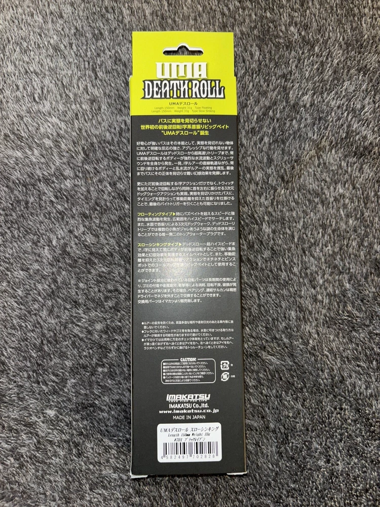 MPN: Does not apply Color: Black Bait Type: Swimbait Brand: Imakatsu gtin13: Does not apply Fishing Type: Freshwater Fishing Model: UMA death roll UPC: Does not apply Material: Plastic Country/Region of Manufacture: Japan
