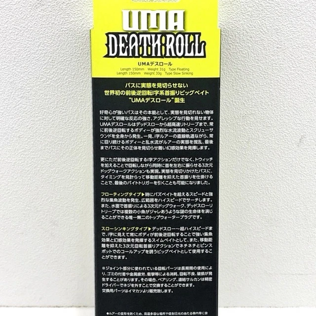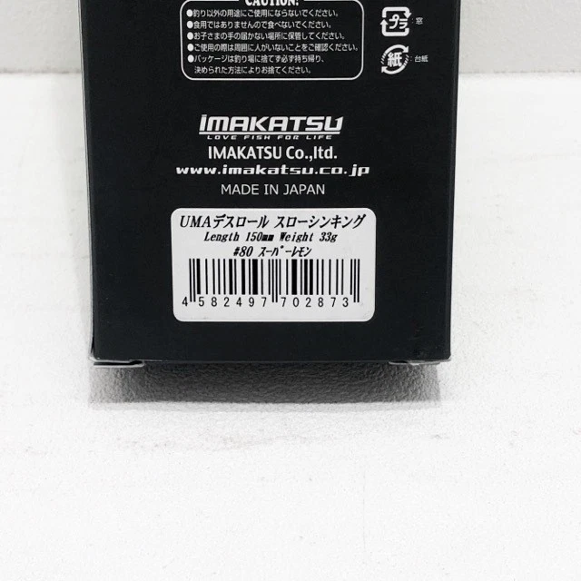 IMAKATSU UMA Death Roll Slow Sinking / #80 Super Lemon Description IMAKATSU UMA Death Roll Slow Sinking / #80 Super Lemon Product name: IMAKATSU Lure #80 Super Lemon Weight: 33g Length: 150mm Lure Type: Hard Lure Color: #80 Super Lemon Yellow Accessories: None *Everything is shown in the photo. Model: UMA Death Roll Shipping We will ship it within 10 business days. >We always send the item with a tracking number. So please place an order without any concern on delivery. You can always track the delivery status. >Shipping is only available to the address registered in eBay. If you want us to send another address, please change your address on eBay and then place an order. >Shipping is available from Monday to Friday. Weekends are not available because freight companies are closed. >Delivery may be delayed due to the weather, customs clearance, and conditions of the destination country. >The delivery method may change depending on the country. International Buyers-Please Note: - Import duties, taxes and charges are not included in the item price or shipping charges. These charges are the buyer's responsibility. - Please check with your country's customs office to determine what these additional costs will be prior to bidding/buying. - These charges are normally collected by the delivering freight (shipping) company or when you pick the item up. - Please do not confuse them for additional shipping charges. - We do not mark merchandise values below value or mark items as "gifts". - US and international government regulations prohibit such behavior.