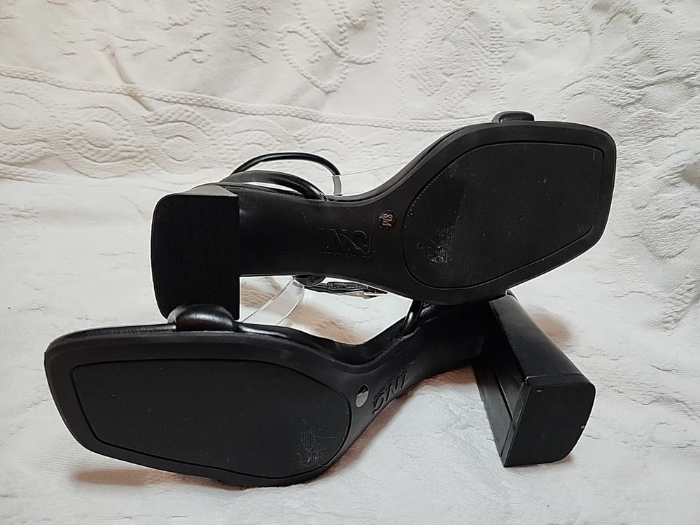 Excellent condition women's INC International Concepts strappy open toe faux leather heels. Little to no wear or flaws.