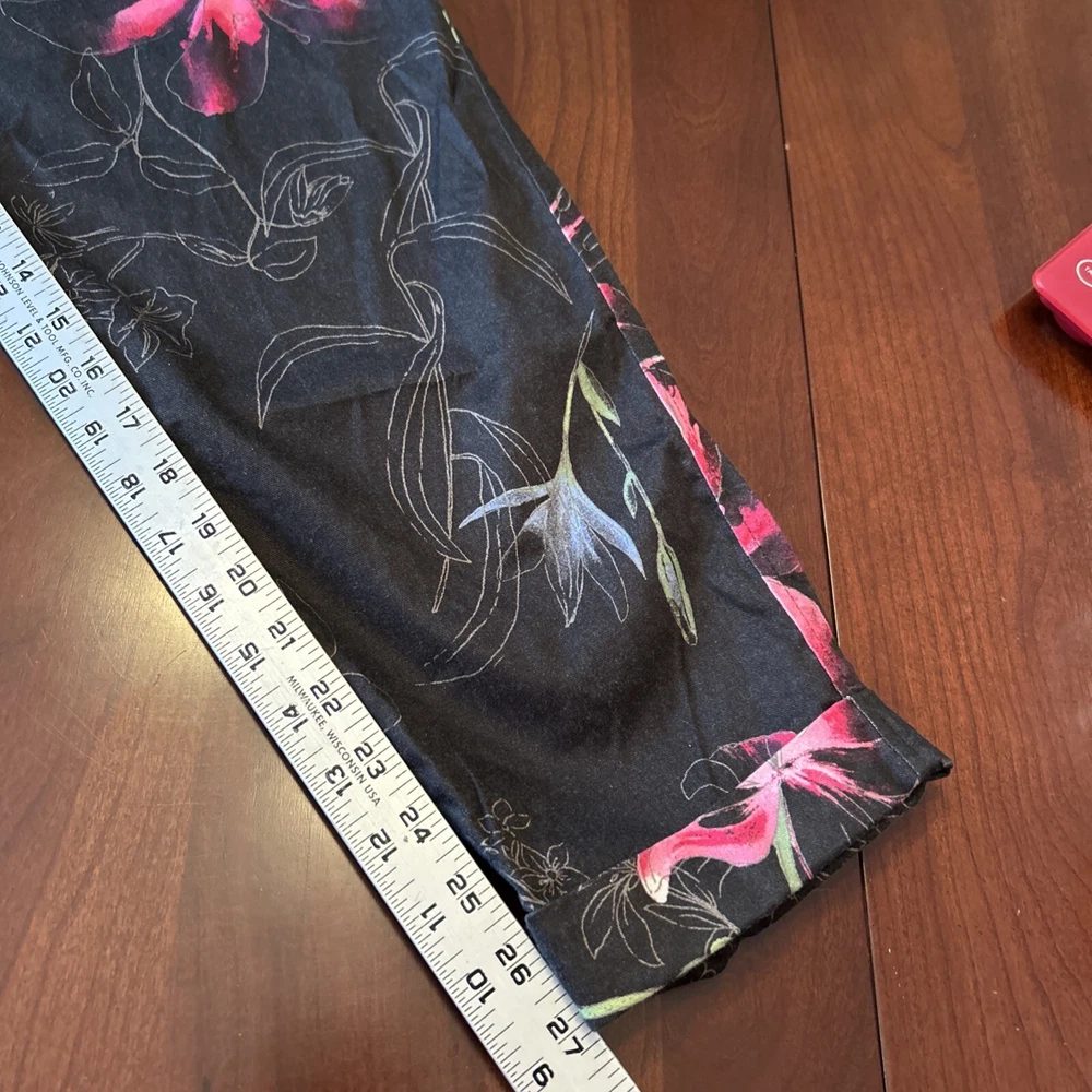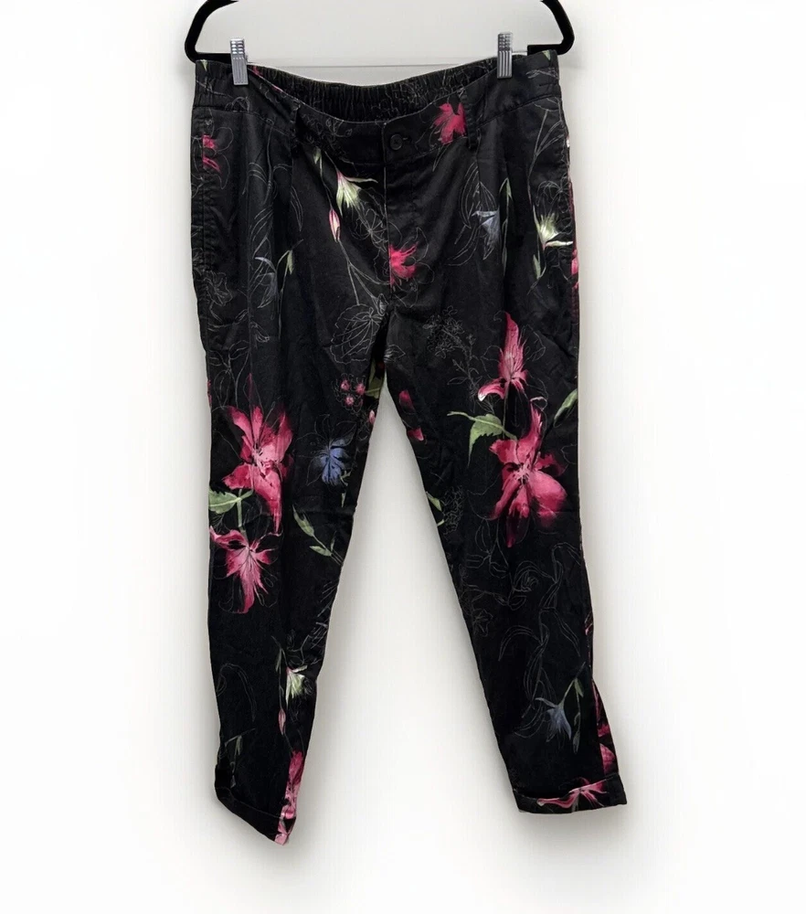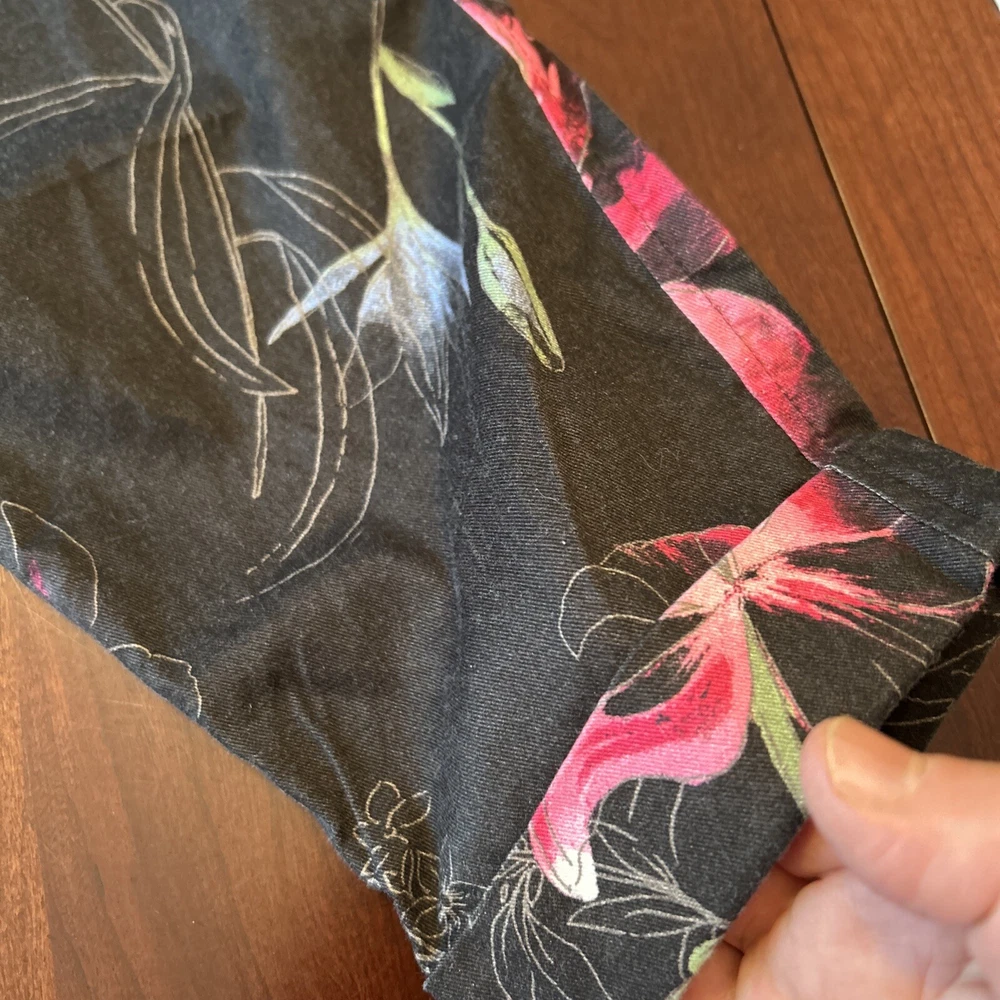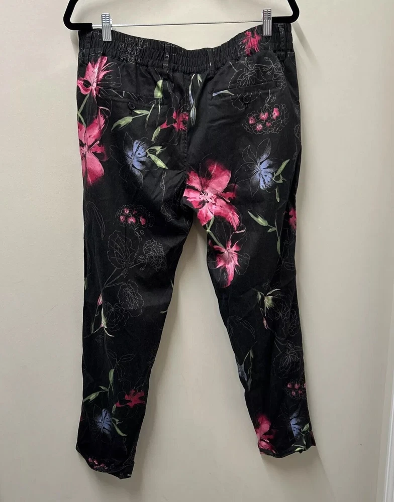 INC International Concepts Womens Pants L Black Pink Floral Tropical 80s Style