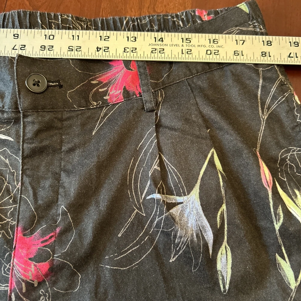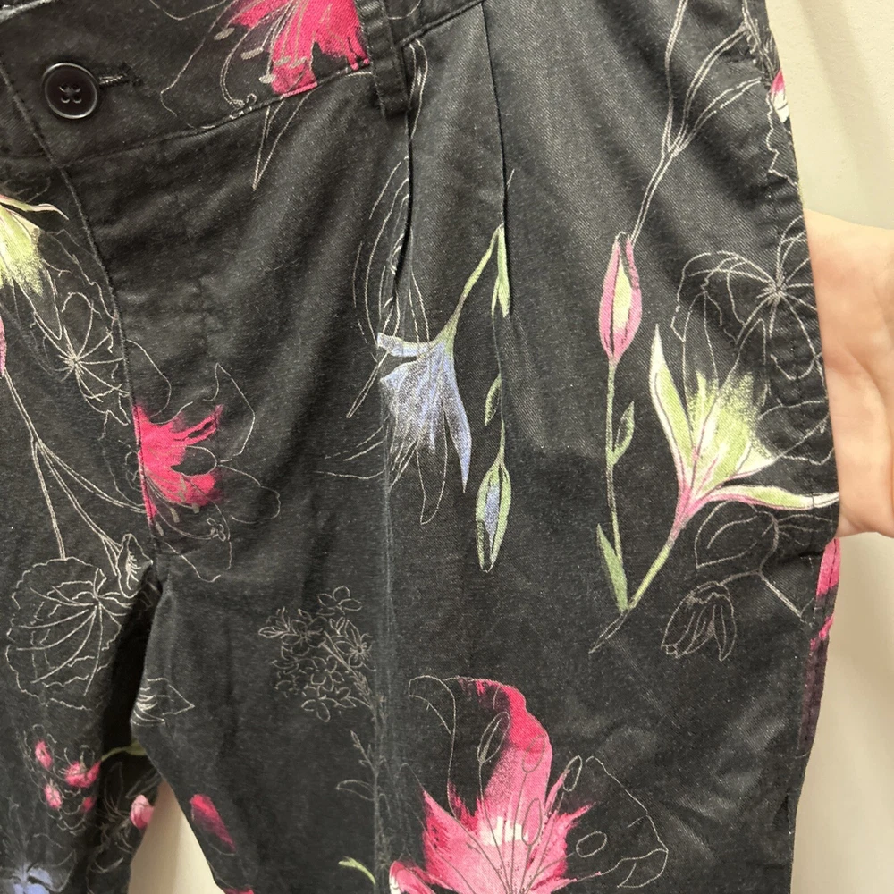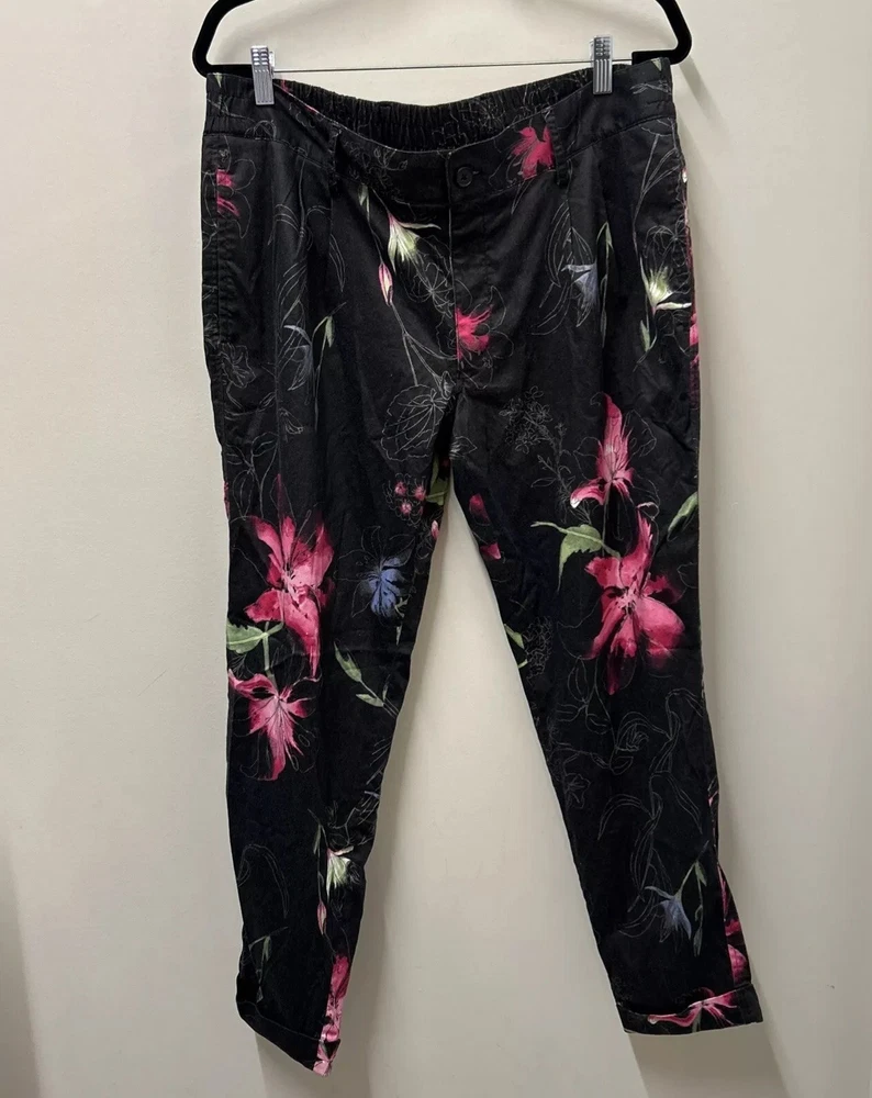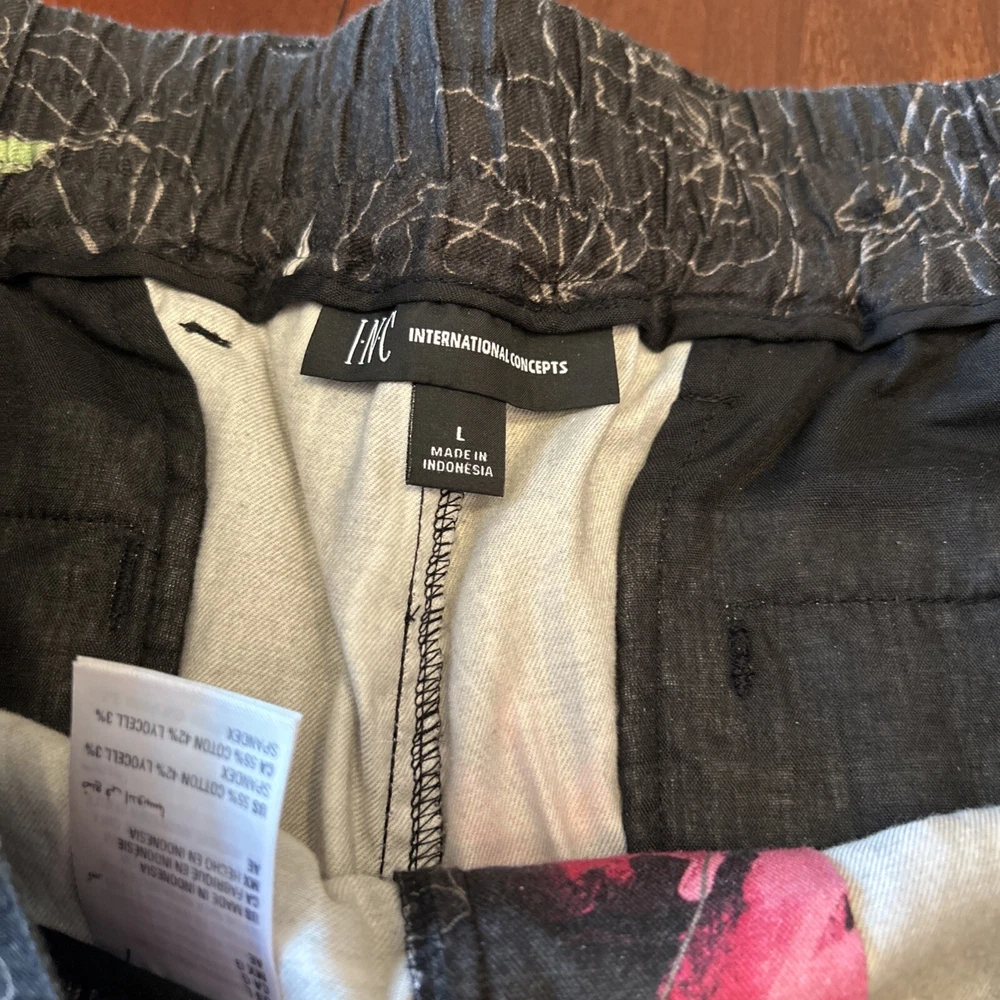 INC International Concepts Womens Pants L Black Pink Floral Tropical 80s Style