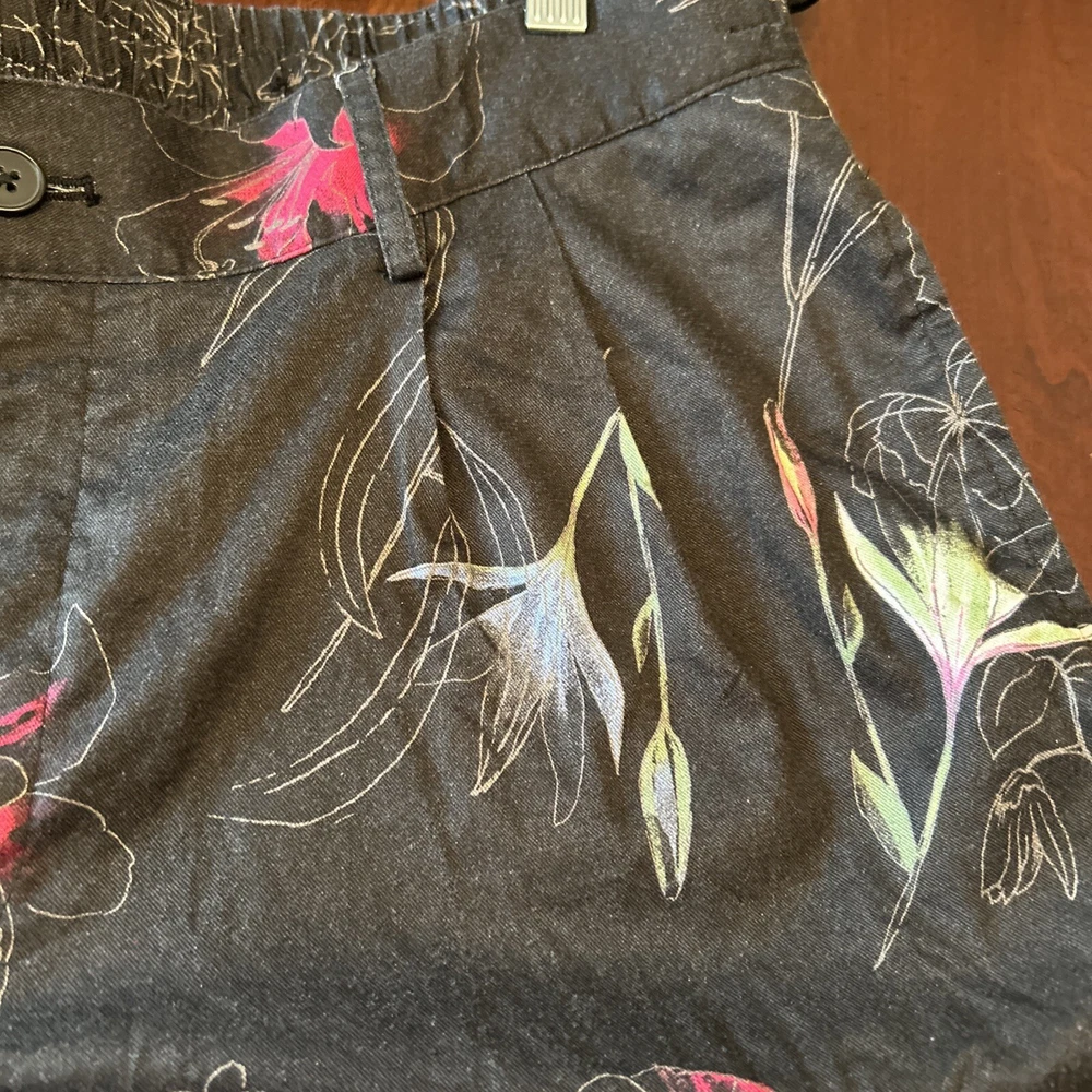 Style: Dress Pants Material: Lyocell, Cotton Features: Pleated, Cuffs Pattern: Floral Accents: Zipper Theme: 80s, Tropical Size Type: Regular Closure: Button, Zip Color: Black Fabric Type: Woven Size: L Vintage: No Brand: INC International Concepts Leg Style: Tapered Fit: Regular Department: Women Type: Pants Occasion: Casual, Formal, Travel