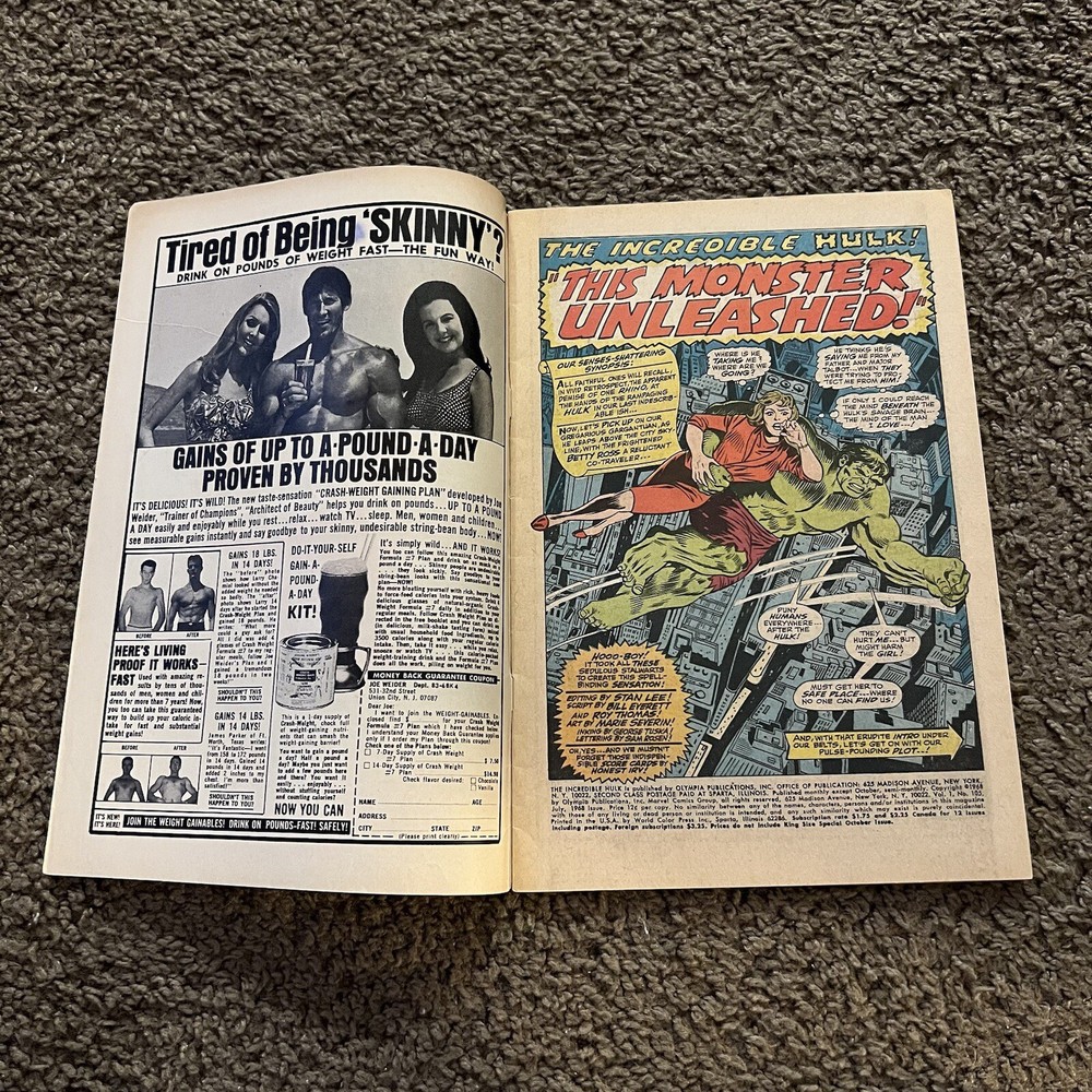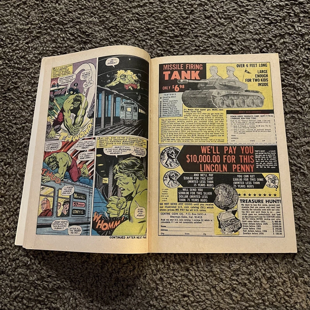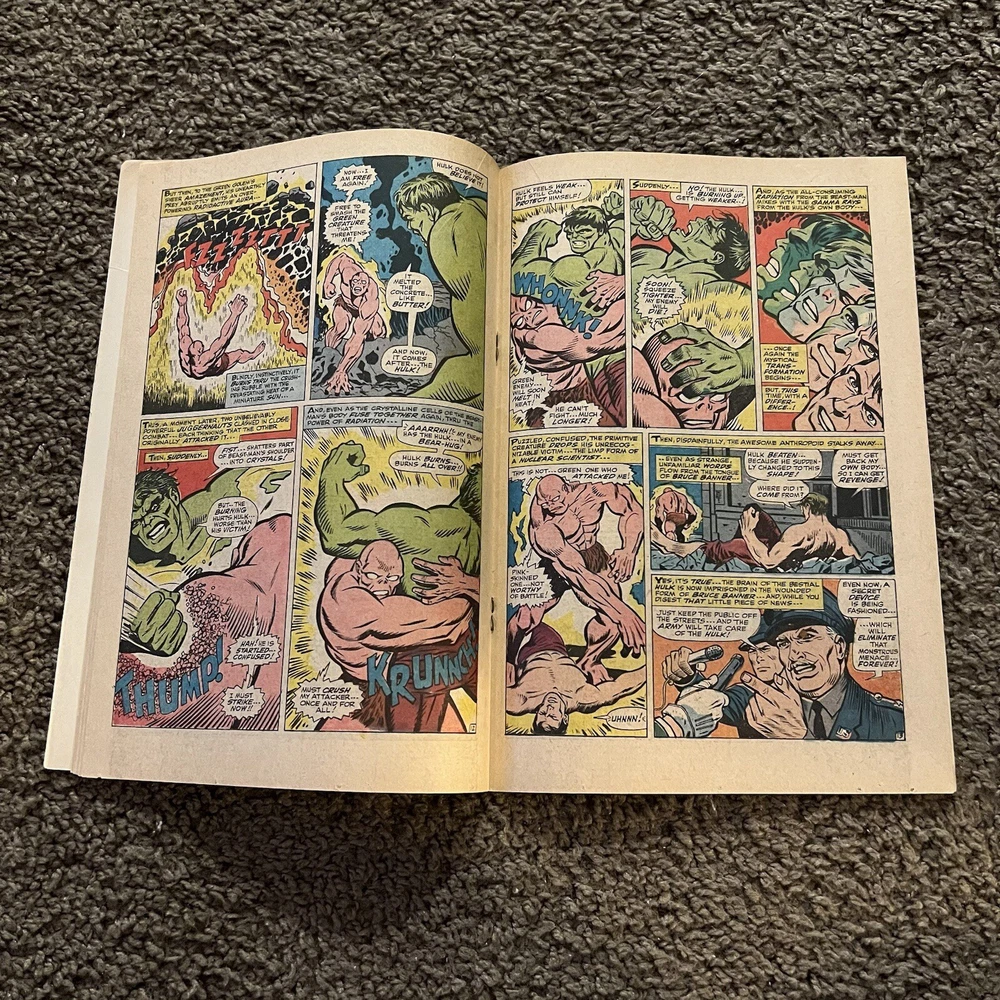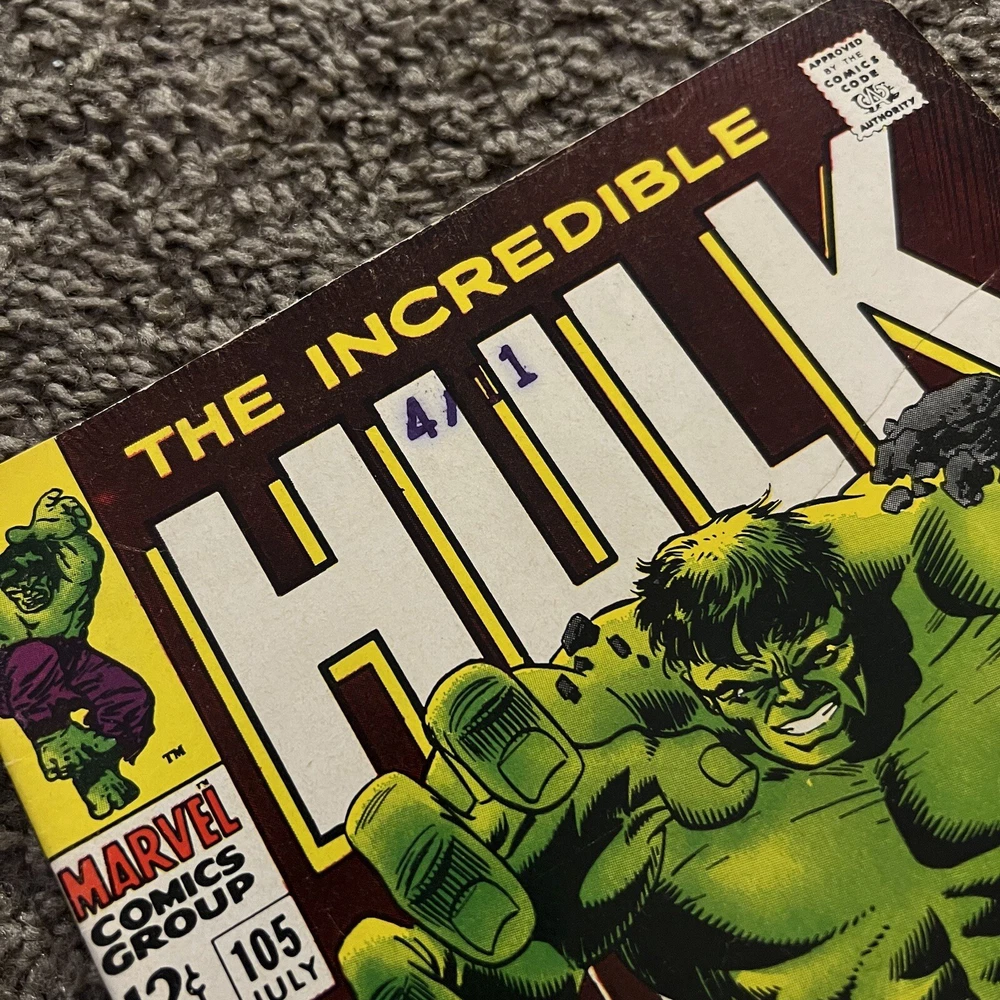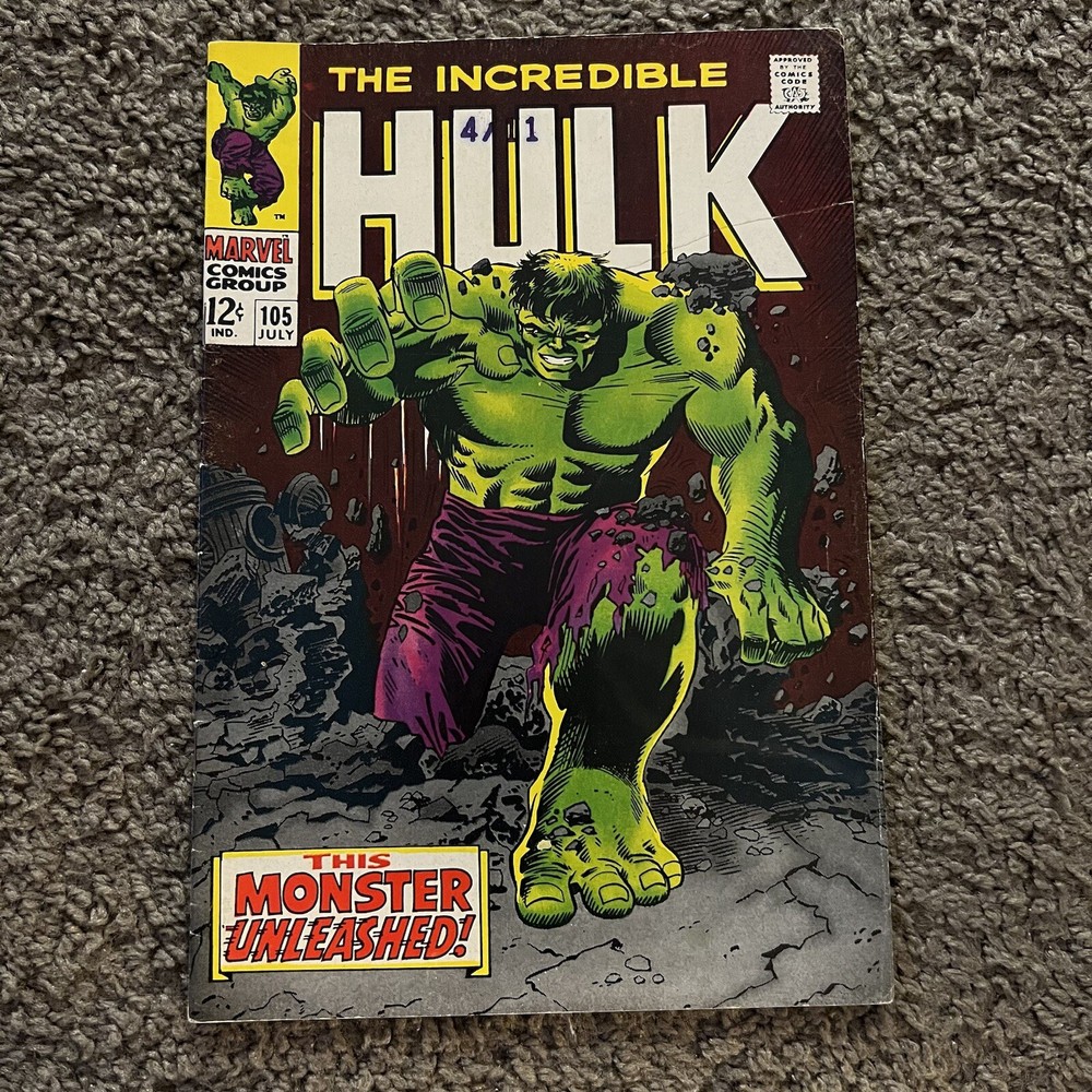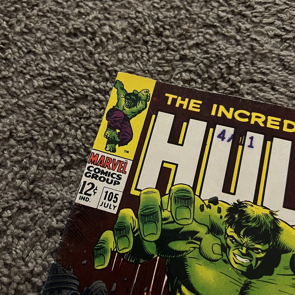 INCREDIBLE HULK #105 (1st MISSING LINK) Higher Grade Potential. Please refer to pictures for condition. Nothing is missing or cut-out from the comic. Straight edges and spine. Minimal creasing. No page separation from spine. Vibrant cover with no sun fading. Protected with card backing and dust sleeve. Plunge into the heart of the Marvel Universe with INCREDIBLE HULK #105, featuring the iconic cover that has captivated fans for generations. This issue marks the first appearance of the enigmatic Missing Link, adding a layer of intrigue and collectibility to this classic piece of comic book history. A must-have for enthusiasts of US Comics tradition, this issue is a tangible piece of the Incredible Hulk series that has enthralled readers for decades. Published by Marvel, this comic is a testament to the enduring legacy of the main character, the Incredible Hulk, and his captivating adventures. Embrace the chance to own a piece of comic lore with this higher-grade potential collectible.