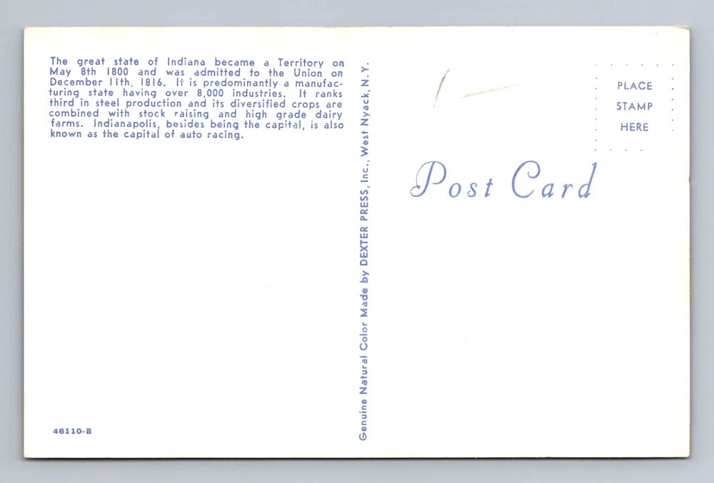 Unit of Sale: Single Unit Material: Paper City: Indiana Country/Region of Manufacture: Unknown Postage Condition: Unposted Era: Vintage Original/Licensed Reprint: Original Size: Standard (5.5 x 3.5 in) Type: Printed (Lithograph) Region: Indiana Country: USA Theme: Cities & Towns Subject: Cities & Towns